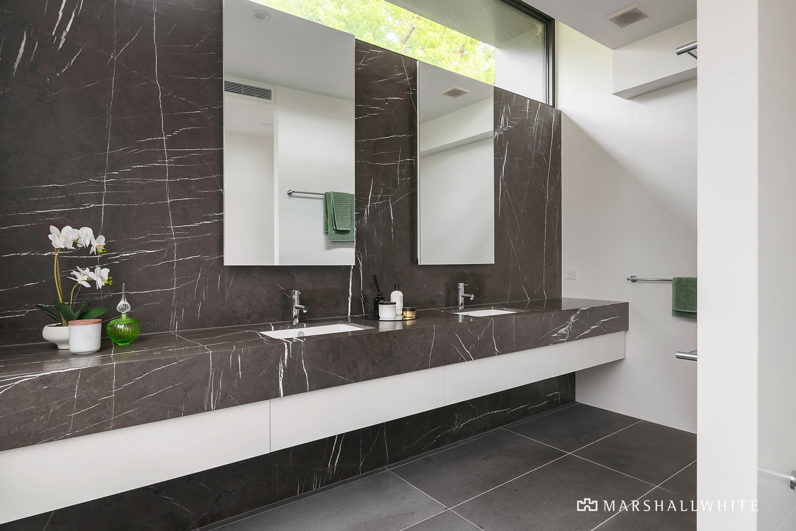 Behind the picturesque, landscaped gardens, the imposing entrance hall featuring beautiful, honed bluestone floors introduces a generous executive study and palatial sitting room overlooking a private courtyard. Beneath 3.2m ceilings and with Venetian polished walls, the expansive sun-drenched open plan living and dining room is served by a streamlined premium kitchen appointed with Miele appliances, stone benches, integrated Liebherr fridge/freezer, Vintec wine fridge and a butler's pantry. Creating a seamless indoor-outdoor flow, the bluestone floors continue out to the large undercover al fresco dining terrace equipped with a BBQ kitchen. It's a sensational venue for all weather outdoor entertaining while overlooking the stunning private landscaped northwest gardens and solar heated self-cleaning pool. The lavish main bedroom with walk in robe and marble en suite enjoys downstairs tranquility with views over the pool while a fabulous children's zone upstairs comprises a second bedroom with stylish en suite and robe, three additional robed bedrooms, a designer bathroom with bath and separate powder-room and a retreat. On the basement level there is a dedicated gym and 4+ car garage with ample storage.