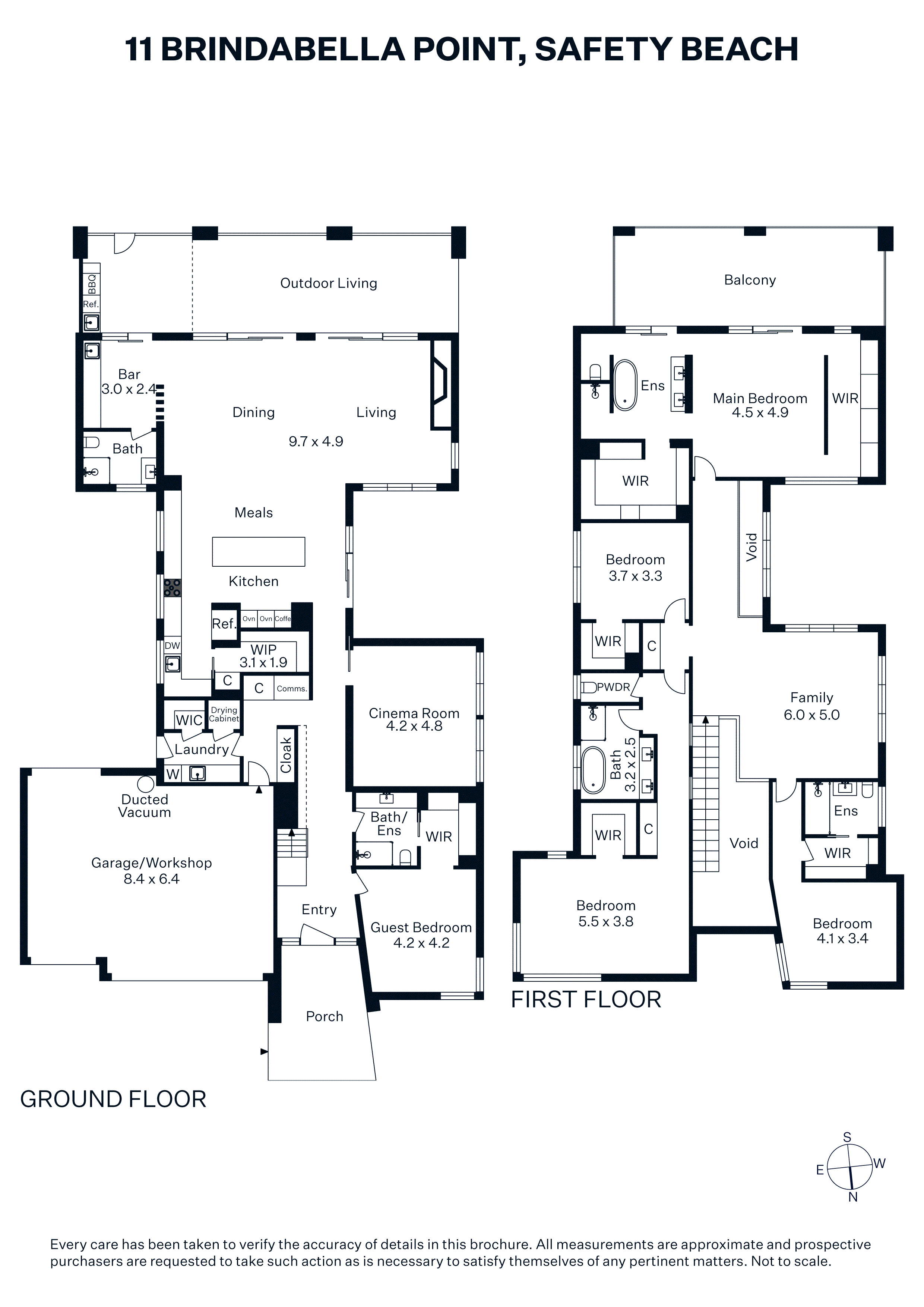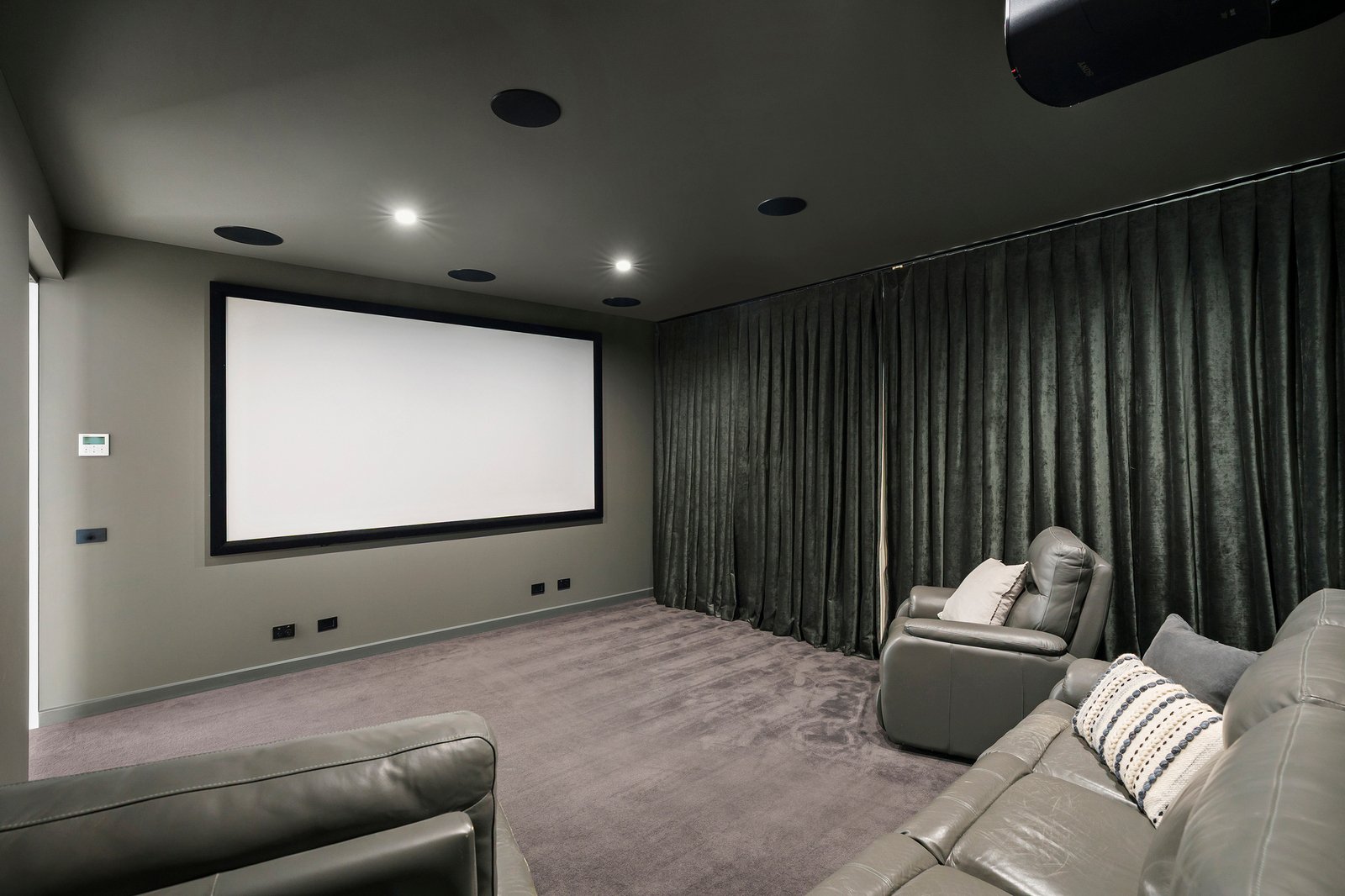 The interior is designed to pull you toward the water, with multiple living areas stepping down through the home until the pool and waterfront beauty come into full view. Generous in proportion and precise in execution, the kitchen revolves around a substantial island and sleek stone surfaces, underpinned by a full suite of Smeg appliances and a butler’s pantry that allows entertaining to unfold at any pace. Expansive open living and dining flow naturally toward a cocktail bar zone and outward to the covered alfresco with a built-in BBQ kitchen, extending the interior to a world-class entertainer’s haven, where the infinity-edge pool with its suspended water seat, becomes the focal point of this resort-calibre outdoor setting. A dedicated ground-floor theatre, kitted out with full sound, gives the kids their own domain, while a guest suite with a walk-in robe and semi-ensuite completes the lower level.