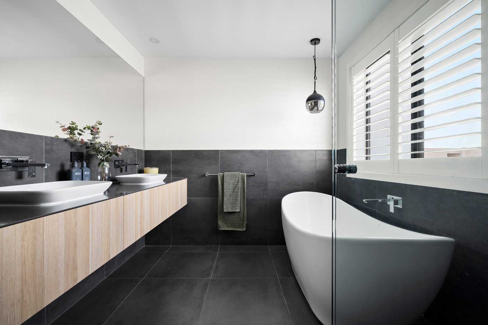 A third living area continues the brilliant layout upstairs, surrounded by three further bedrooms, all with walk-in robes and one with its own ensuite, plus a central bathroom with a freestanding bath. The primary suite is something else entirely, terrace-connected and oriented to capture breathtaking sunsets across the water; its luxurious ensuite features a freestanding bath and generous walk-in robe.