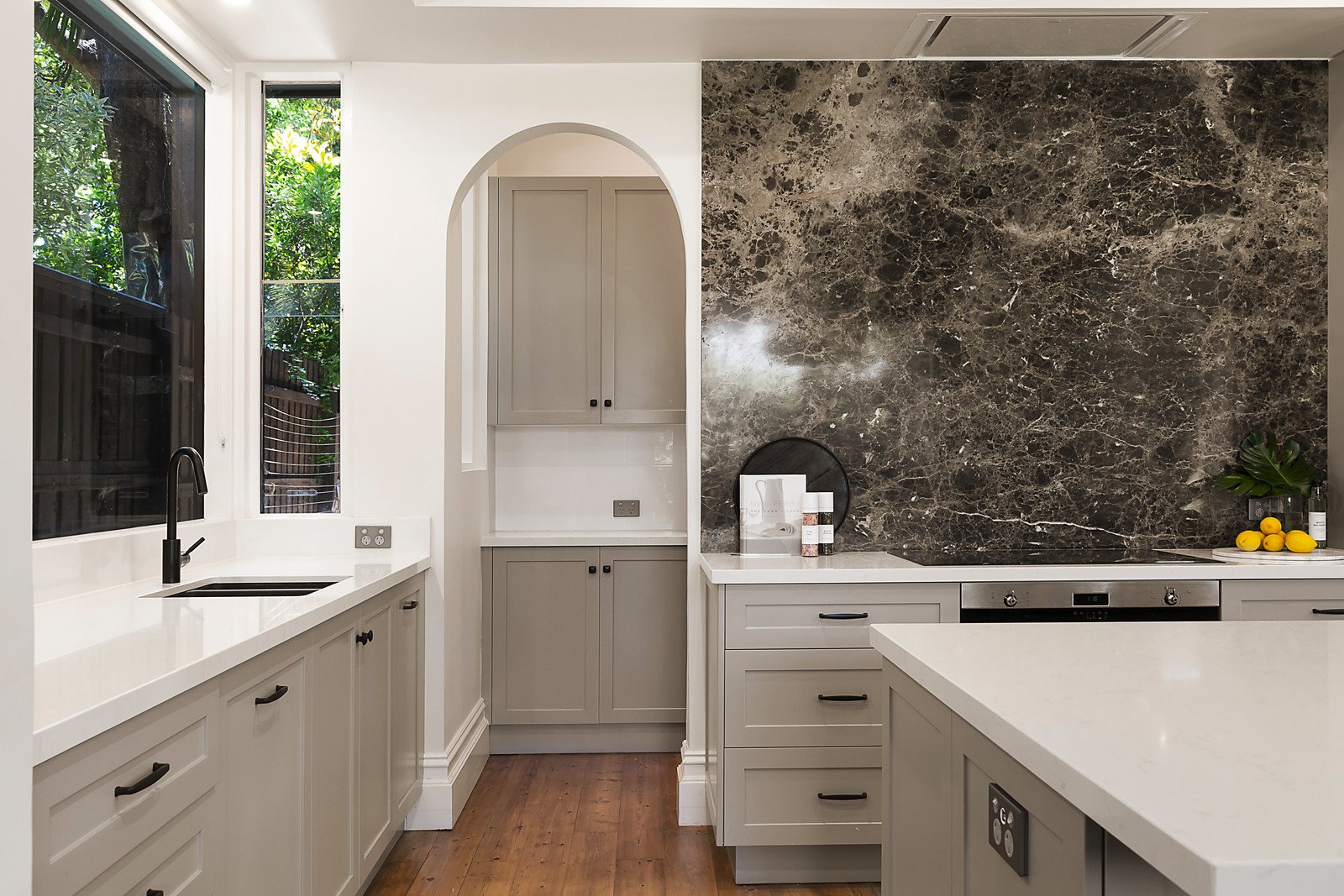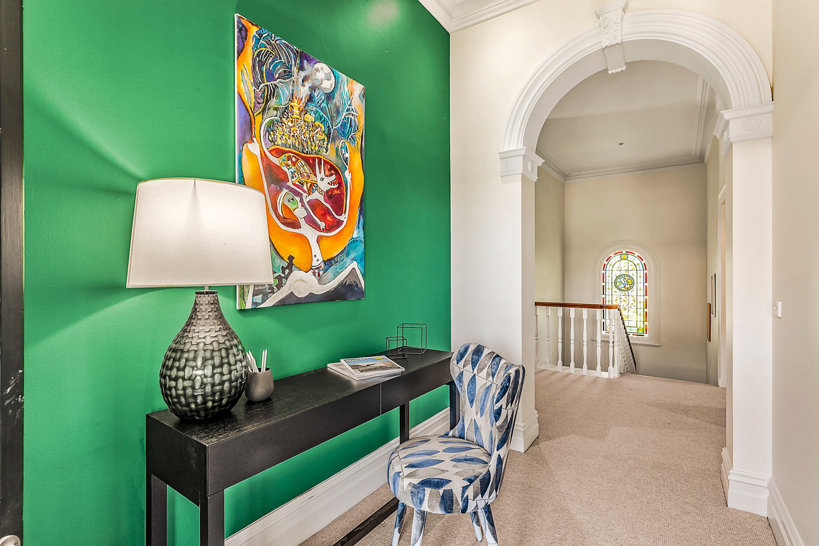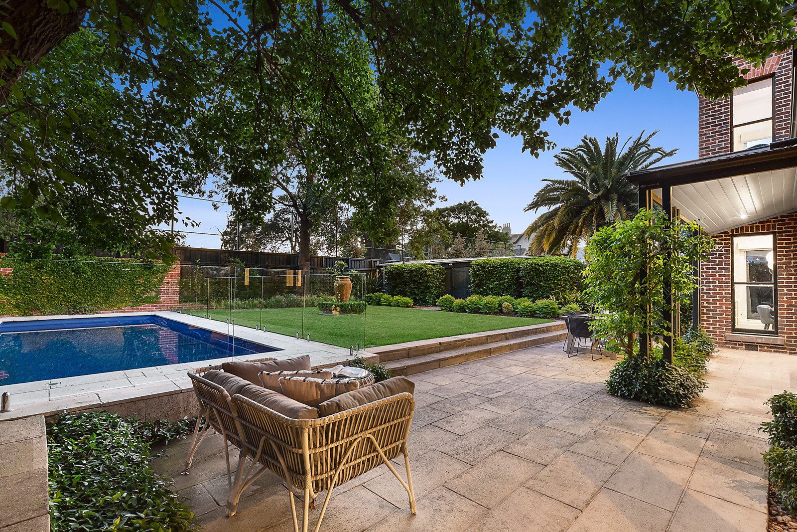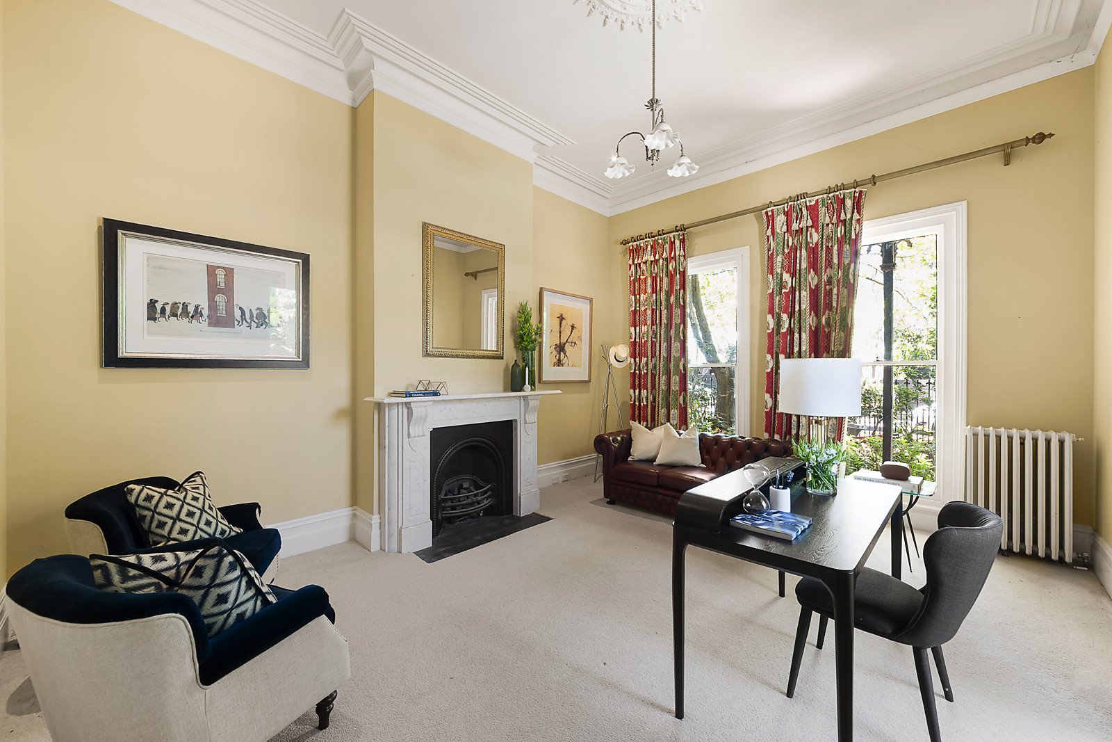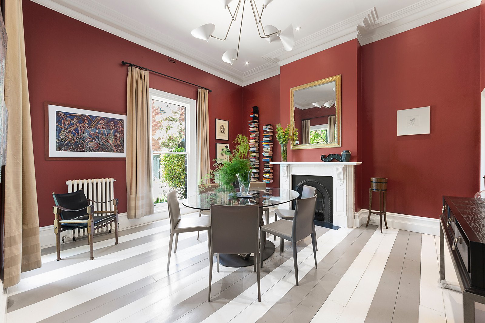 Set within expansive established gardens with pool, the spectacular interior is replete with glorious period elegance including ornate leadlight windows, high ceilings and Baltic pine floors. An arched reception hall flows through to a refined home office or library with marble fireplace, an evocative formal dining room with open fire, a gracious sitting room warmed by a marble fireplace and a retreat/5th bedroom. Beneath a soaring vaulted ceiling and reflecting Hamptons' style, the exceptionally spacious family living and dining room features an open fire and recently renovated gourmet kitchen appointed with stone benches, Smeg appliances and a butler's pantry. The living area opens out to a private leafy garden landscaped with extensive paved terraces and a heated pool. A stately staircase leads up to the beautifully proportioned main bedroom with walk in robe and chic en suite, two additional bedrooms with marble fireplaces and robes, 4th bedroom with en suite and built in robe, a study nook and stylish 3rd bathroom. All bathrooms were recently renovated.
