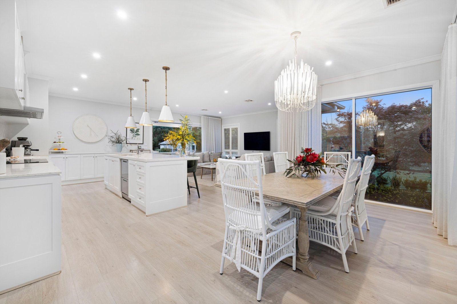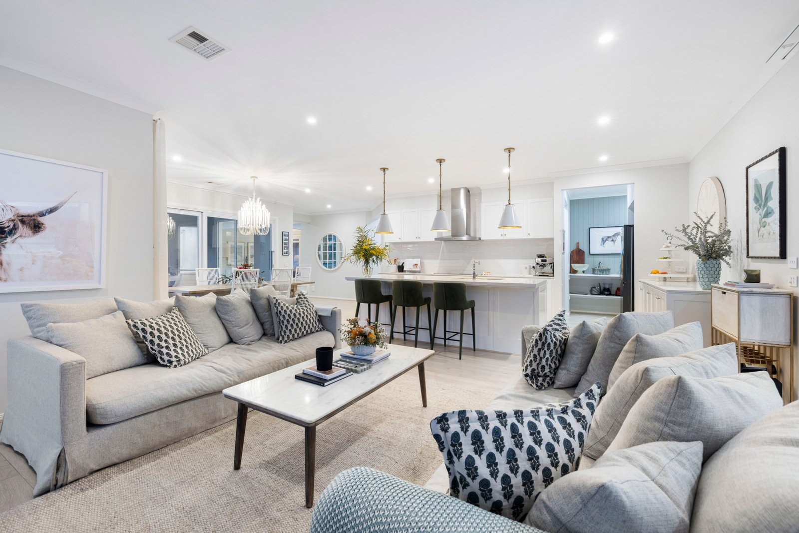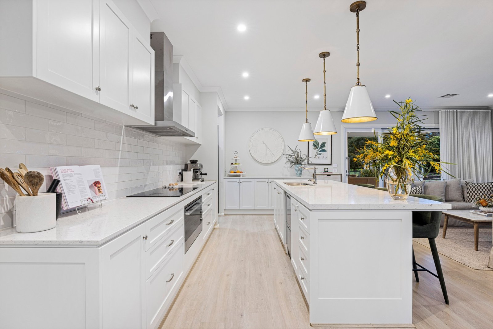 Privately set behind automated gates, an ornamental pear-lined gravel driveway culminates in a turning-circle in front of the modern coastal-inspired single level residence edged with established landscaped gardens. Built just five years ago and presenting as new, the professionally designed open plan living space is resplendent with engineered timber flooring and large picture windows that draw in an abundance of natural light and frame lovely rural outlooks. Defined by a stone-topped island bench, the gourmet farmhouse kitchen is equipped with top-of-range appliances, including an induction cooktop, 900mm oven, and a double dish-drawer dishwasher, and is adjoined by a walk-in preparation pantry. Glass sliding doors open to a north-west facing undercover alfresco entertaining deck, with built in barbecue kitchen with fridge and sink, and there is a second sheltered undercover courtyard that adds to the home’s highly considered indoor/outdoor liveability designed to celebrate the abundance of nature including the daily chorus of birdsong and local wildlife including koalas, wallabies and echidnas. Zoned for relaxed family living, the lavish main bedroom suite includes a walk-in robe/dressing room and ensuite with dual vanities and walk-in shower, while the other three bedrooms all have built-in robes and are positioned in a separate wing along with the main bathroom and a rumpus/games room. Additional features include a study, formal lounge, zoned ducted heating/cooling, a laundry with external access door and internal access to the double garage with remote auto door.