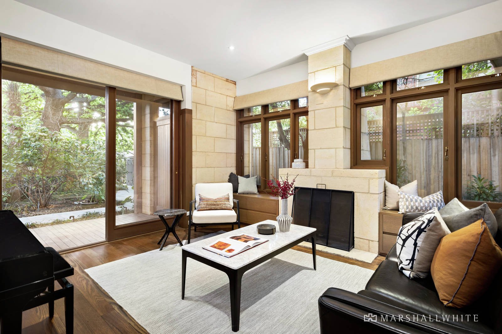 Exclusive Victoria Street is the perfect address for a magnificent lifestyle, and it's where you can own an exceptional home around the corner from the beach. Ultra-private four-bedroom and study hideaway has the luxury of a large garden pavilion, designed by architects Williams Boag as the ultimate multi-purpose space. It's outstanding as a large games room or gym and yoga space, home business headquarters, guest bedroom, or for hosting big celebrations. Sitting on 826sqm (approx.) of land, the main house designed by John Bastow excels with a flexible floorplan and quality-rich interior. There's the option of both ground-floor and first-floor bedrooms and living zones, space for two studies, and four ground-floor living and dining zones. Garden views are on show through floor-to-ceiling windows in the tranquil family room, the kitchen has Gaggenau and Miele appliances and generous storage, and the atrium gallery introduces natural light and space to display your art collection. Head upstairs and discover the superb parents' retreat with a large bedroom, stylish ensuite, lounge/library, walk-in and built-in wardrobes, a full-width terrace, sea breezes and views of big oak trees. The limestone and cedar exterior are timeless, and inside you'll find Tasmanian oak waxed floors, three renovated Villeroy & Boch bathrooms, cast-iron hydronic heating radiators, and plenty of custom-made shelving and storage space. A first-class choice for living metres from the bay, a few blocks from Church Street's shops and cafes, and close to Brighton Grammar School and Middle Brighton train station.