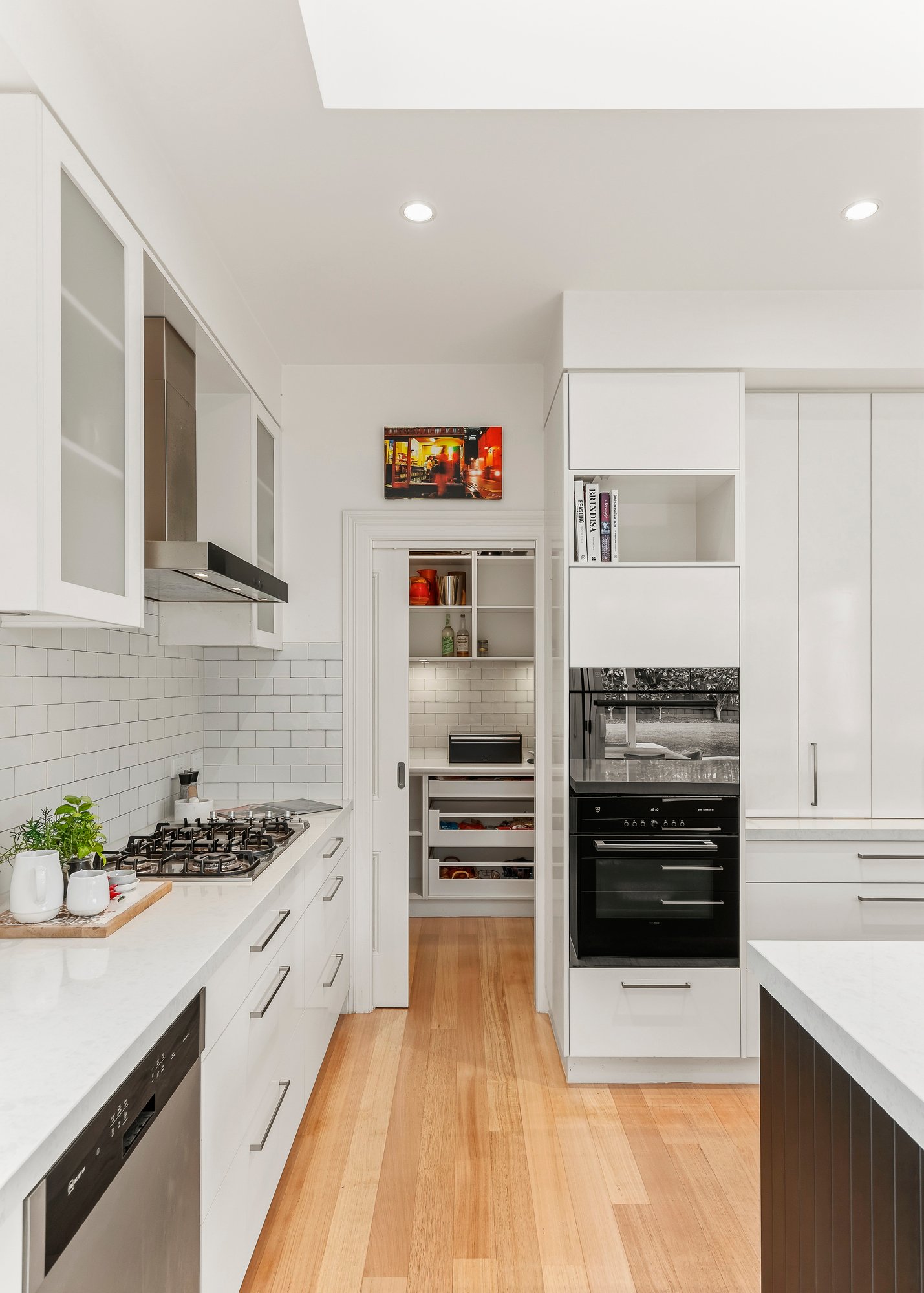 With an expansive and light-filled open-plan living area carefully curated to capture views of its north-east facing gardens, the indoor living space seamlessly flows into an open and airy covered alfresco with heating that is perfect for long lunches, family gatherings and larger-scale parties. A focus of the home is its exceptional gourmet kitchen centred around a huge stone-topped island bench that comfortably seats 4-5 people for daily meals or drinks with friends. The finest European appliances, including 2 V-ZUG ovens and an Ilve 5-burner stovetop, completes the indoor culinary and entertainment experience.
