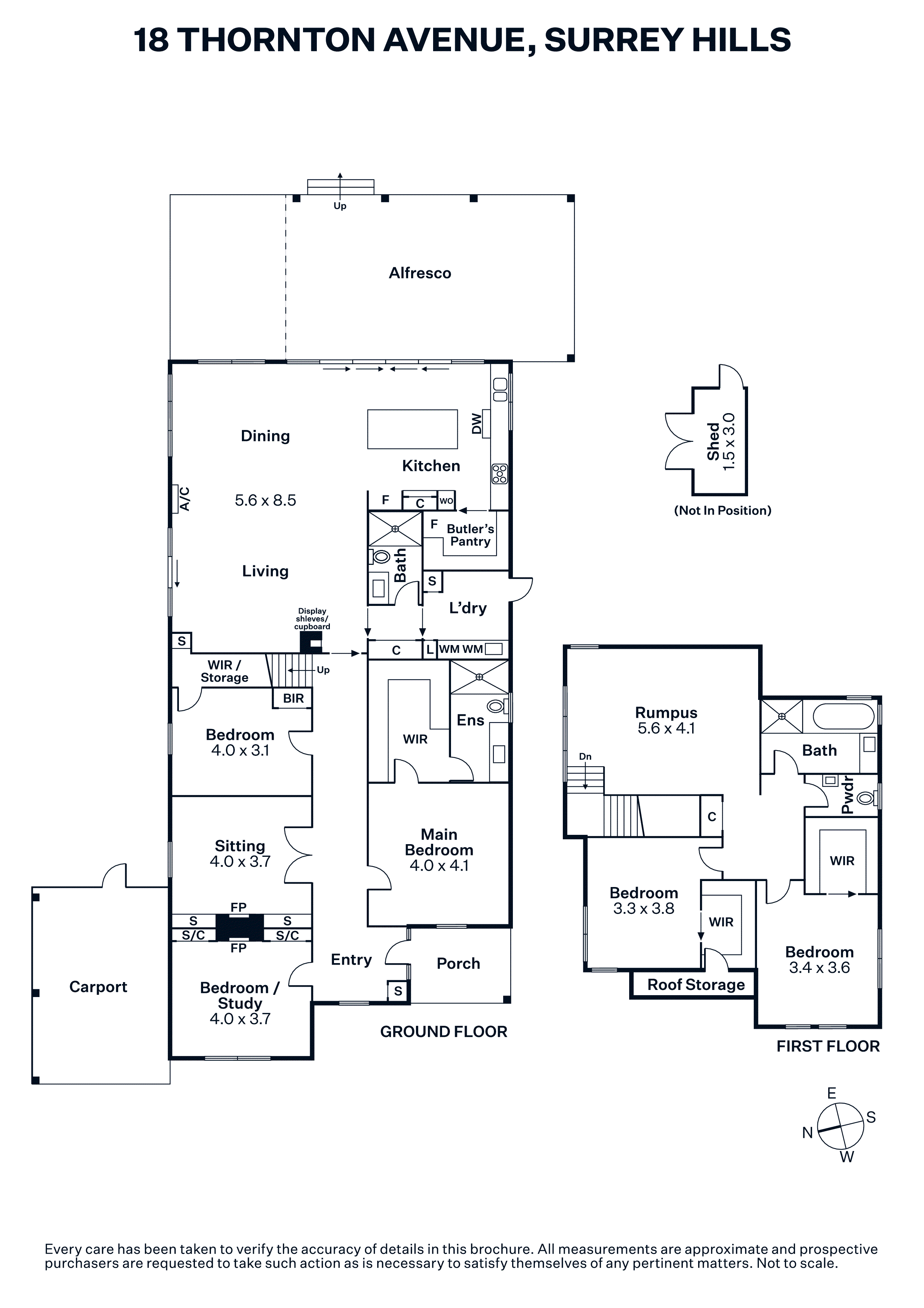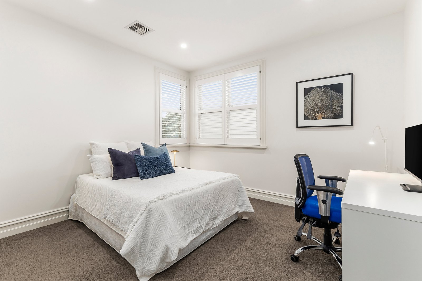 The ground floor master bedroom offers a parents’ sanctuary including a luxurious ensuite accessible via a large dressing room with built-in robes. A front-garden facing home office complete with original fireplace could serve as a fifth bedroom. Upstairs, an exceptional separate wing awaits, including an expansive rumpus/retreat, fully tiled central bathroom with bathtub, and two sizeable bedrooms featuring walk-in robes.