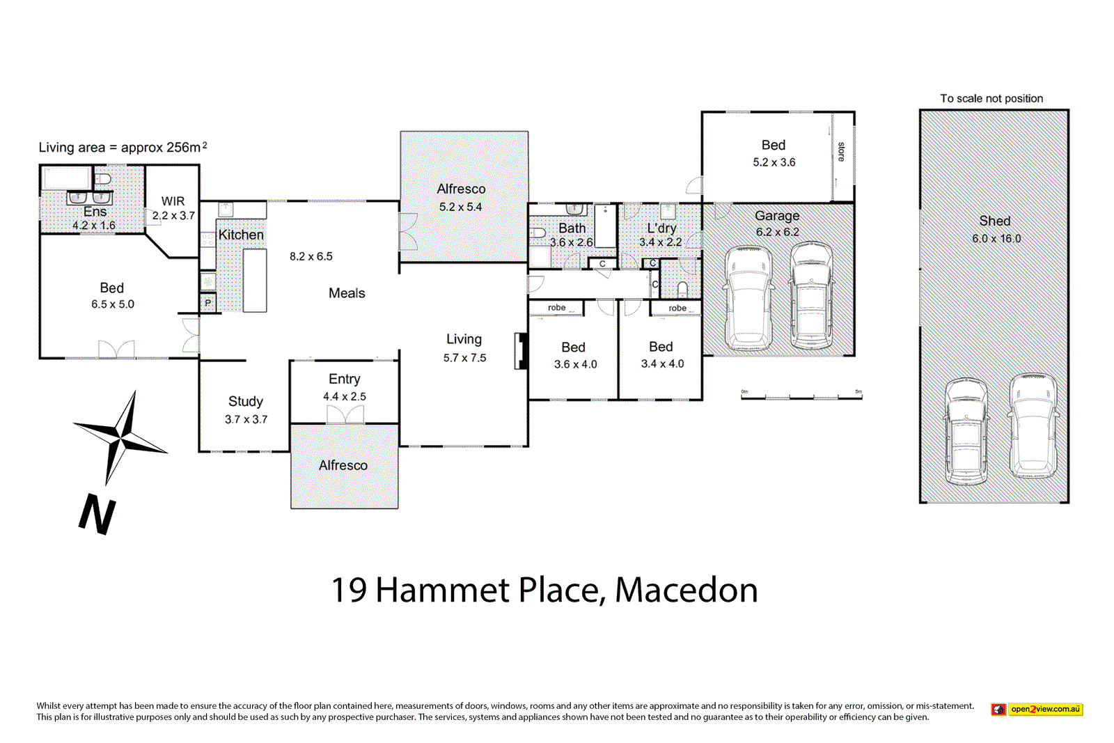 • Large 6m x 16m shed with power and concrete flooring, space for 6 cars.