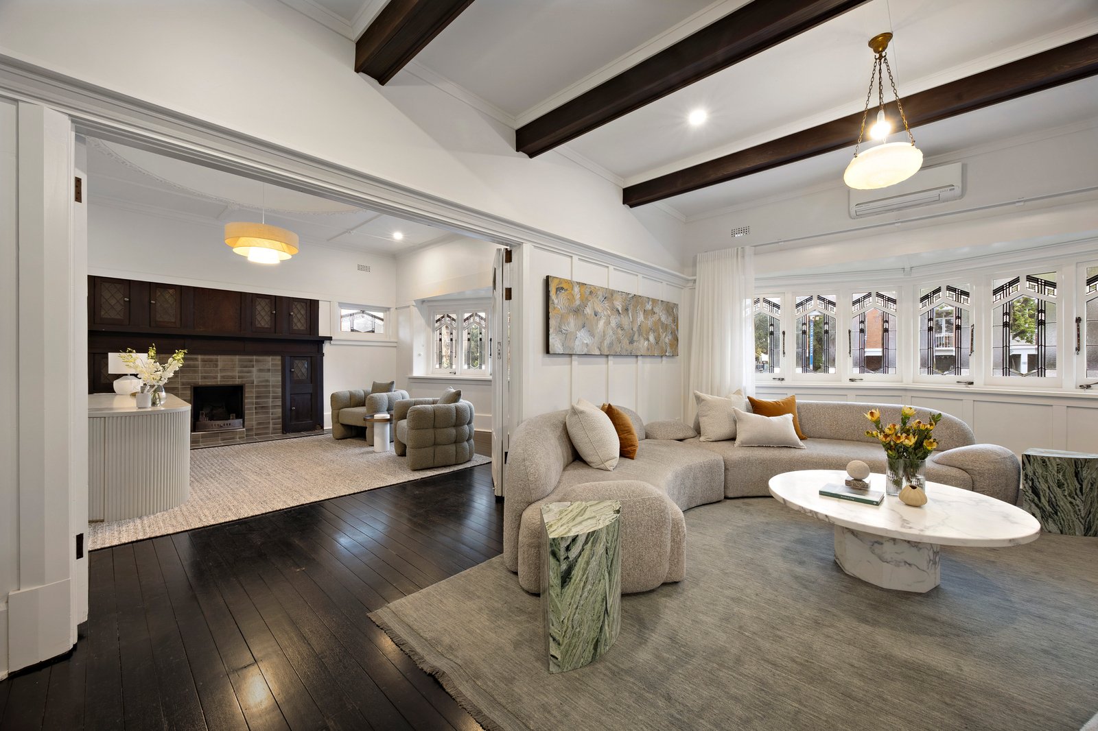 Reflecting the signature architecture of the Walter Burley Griffin school, this magnificent solid brick c1920’s residence’s evocative original features and impressive proportions have been merged with contemporary designer style to create versatile spaces that adapt to a multitude of modern family needs.