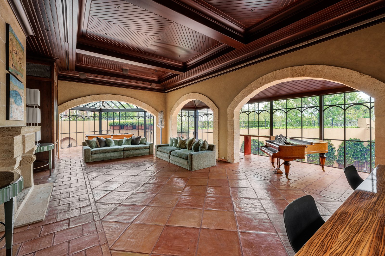 Designed by Catt Architects, the residence is introduced by a sweeping circular driveway that opens onto impeccably landscaped Paul Bangay designed gardens, where manicured hedges, cascading wisteria, and perfectly striped lawns elegantly frame the home. Garaging for four vehicles, ample guest parking and a highly adaptable interior support both private living and grand-scale entertaining. Inside, six-metre ceilings rise above a magnificent foyer, introducing an executive office, an elegant lounge, and a formal dining room, each oriented toward tranquil garden or pool aspects.