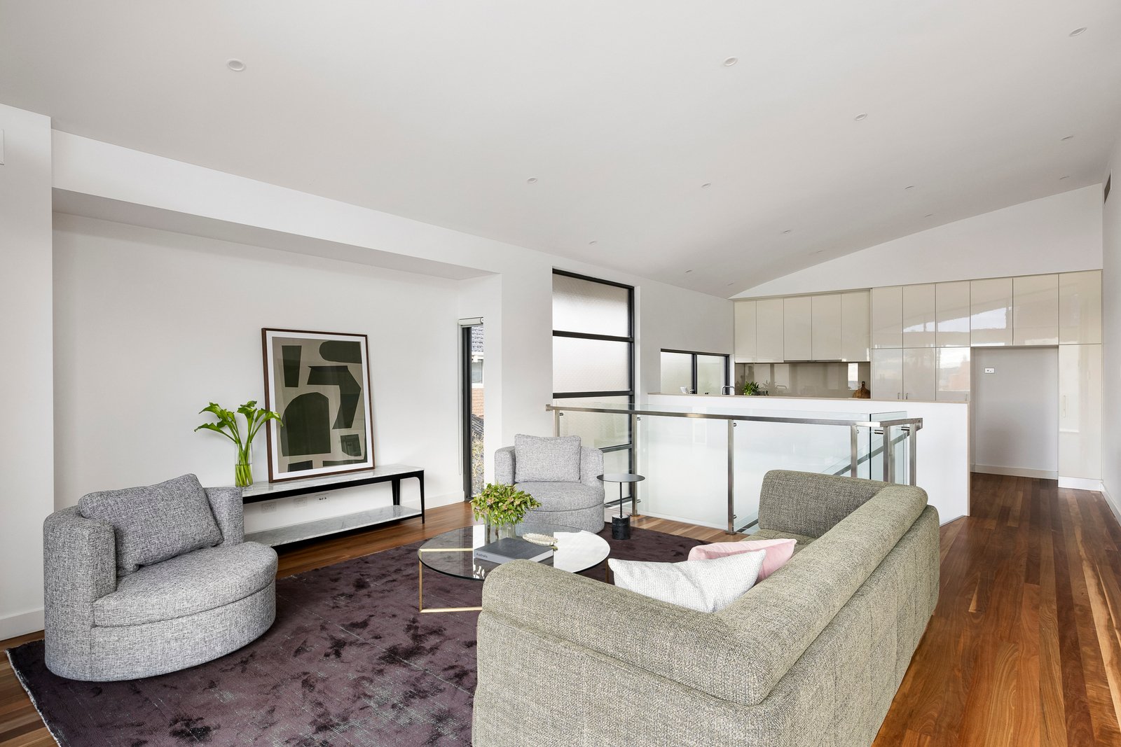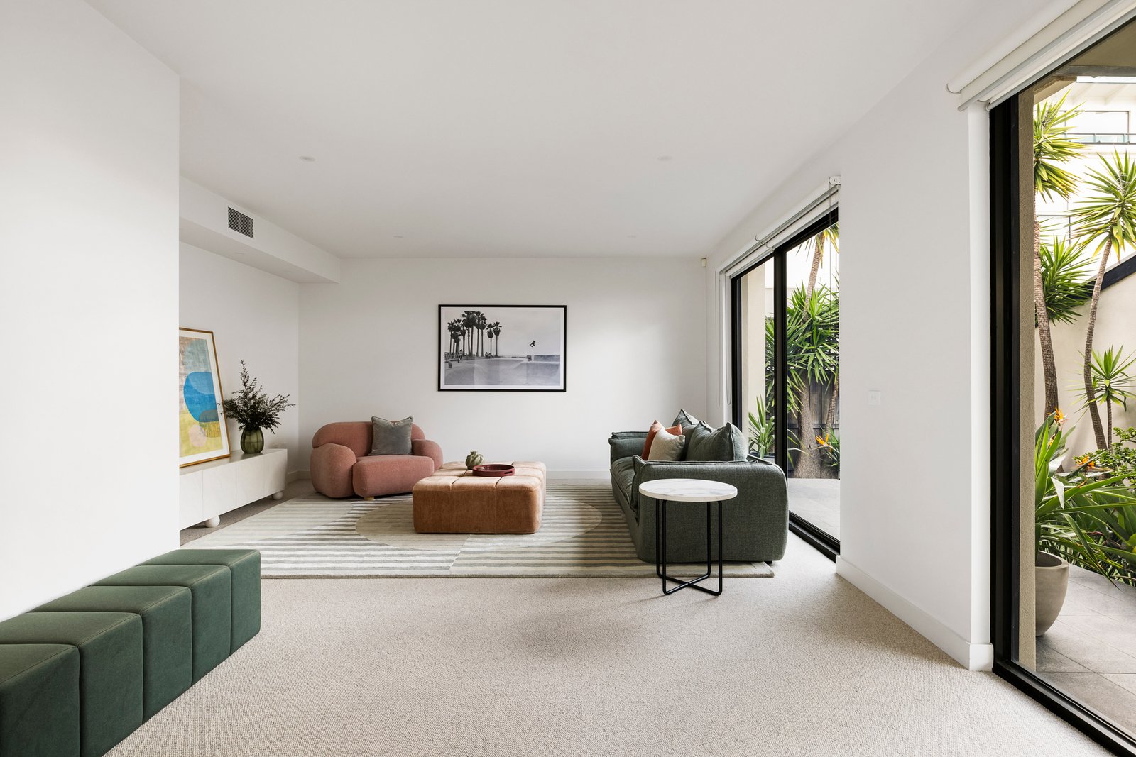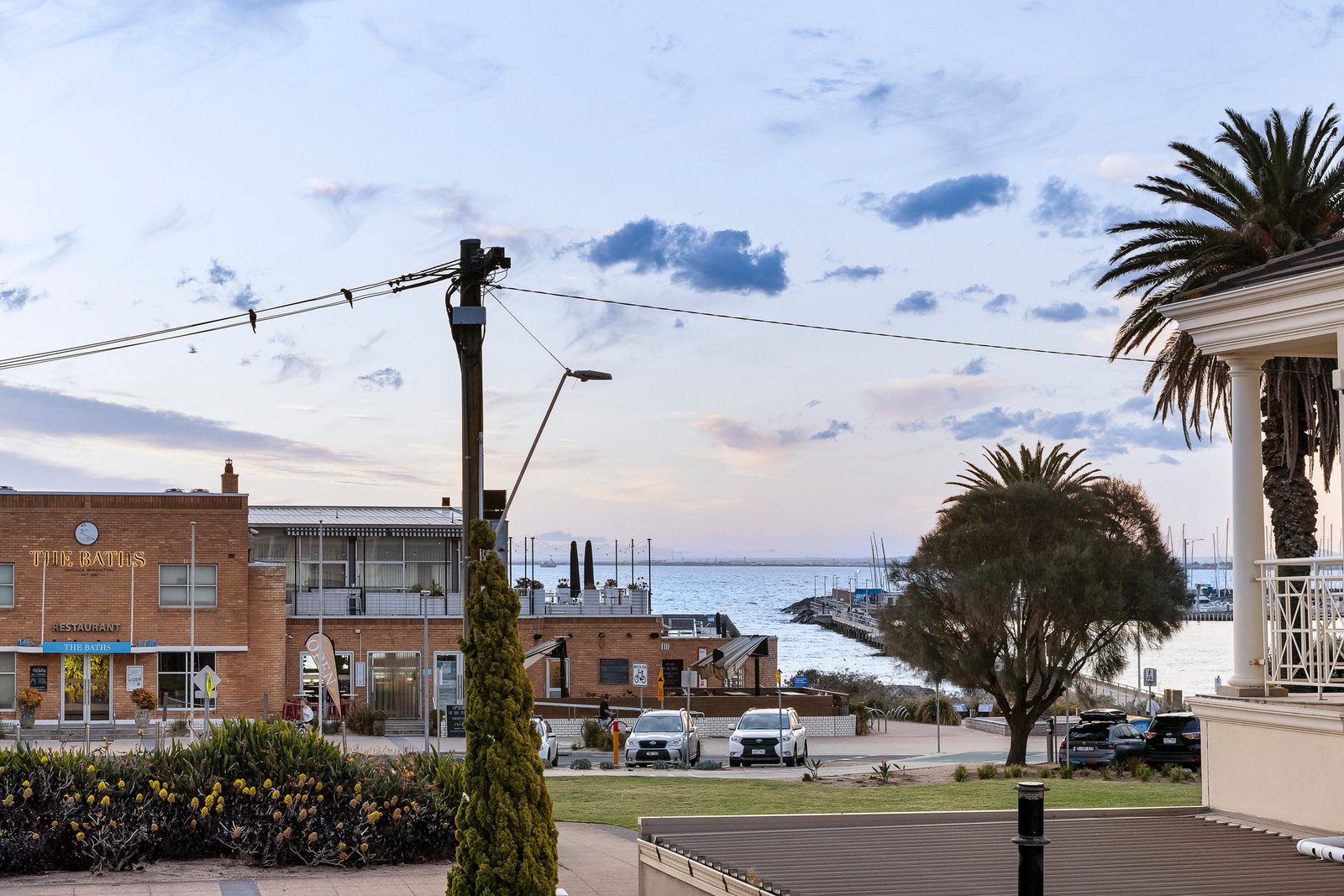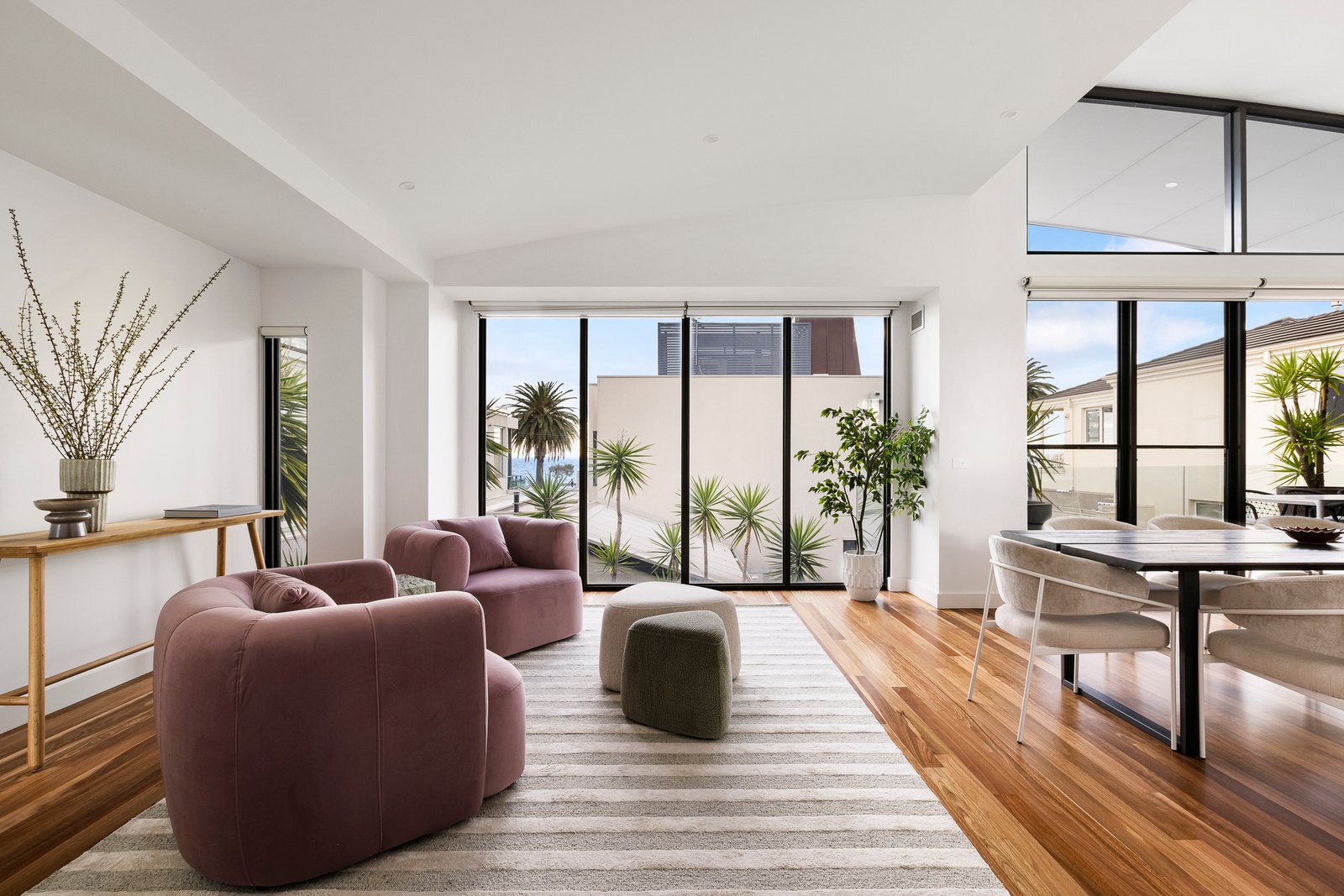 Brilliantly positioned, for direct water views of Middle Brighton beach and tranquilly rear-set away from Esplanade traffic, this luxuriously appointed and grandly proportioned three-bedroom Brighton residence has been architecturally designed to showcase breathtaking Bay vistas, and celebrates impressive entertaining and adaptable contemporary family functionality with two expansive living areas and two fitted studies.