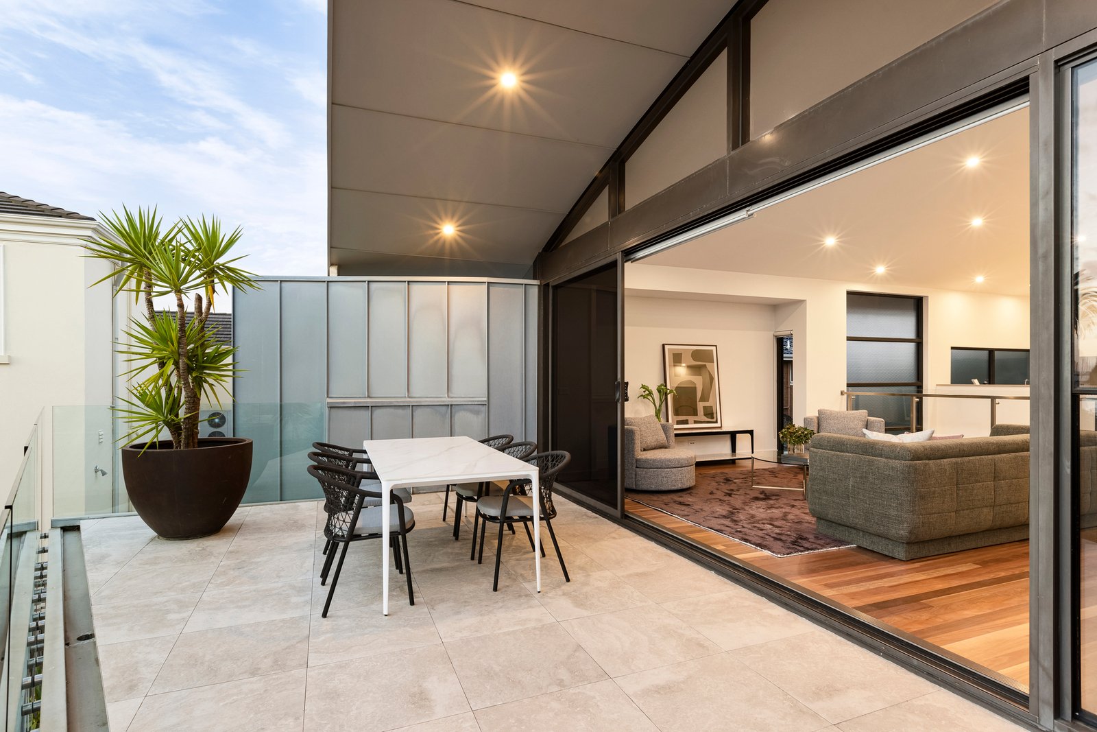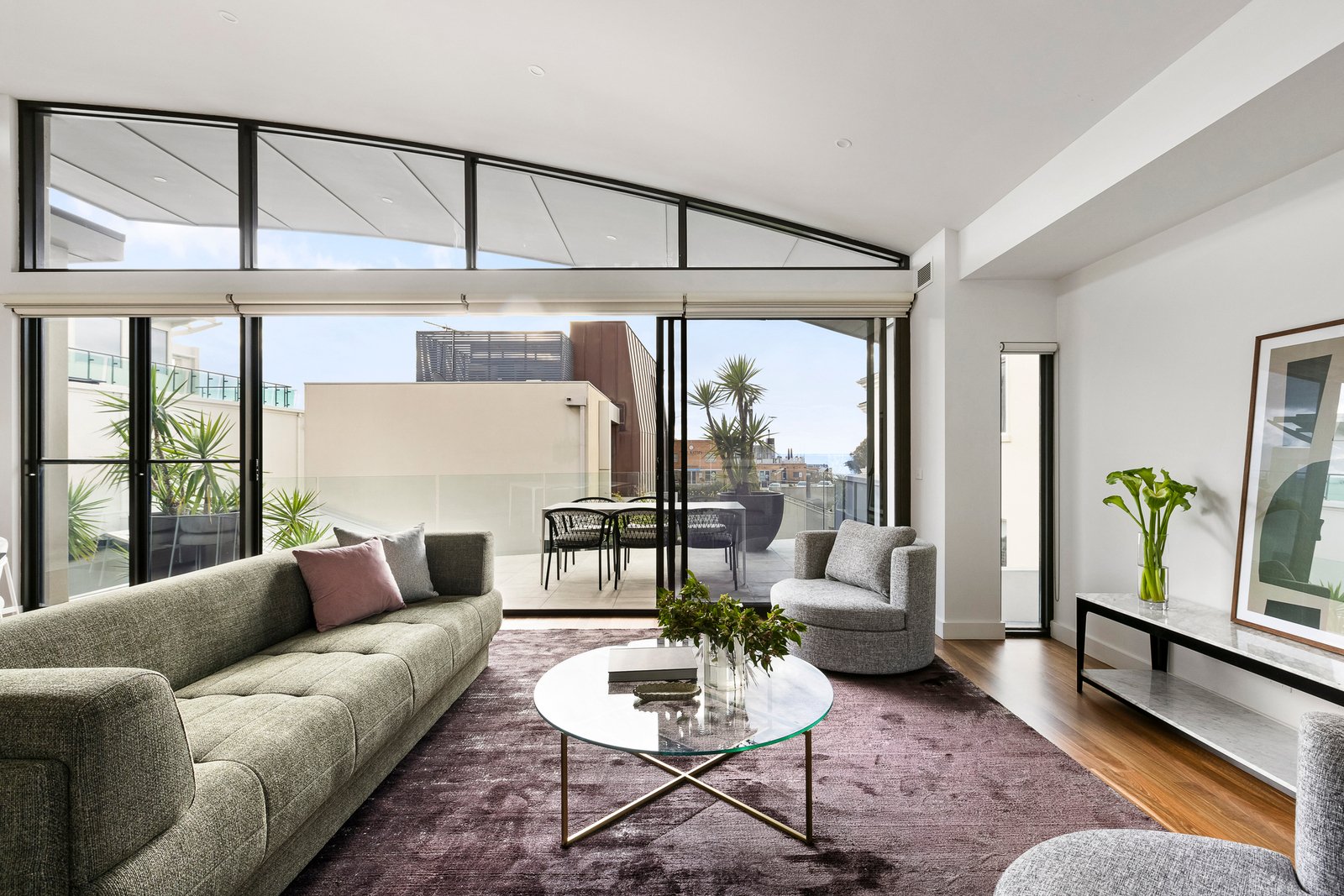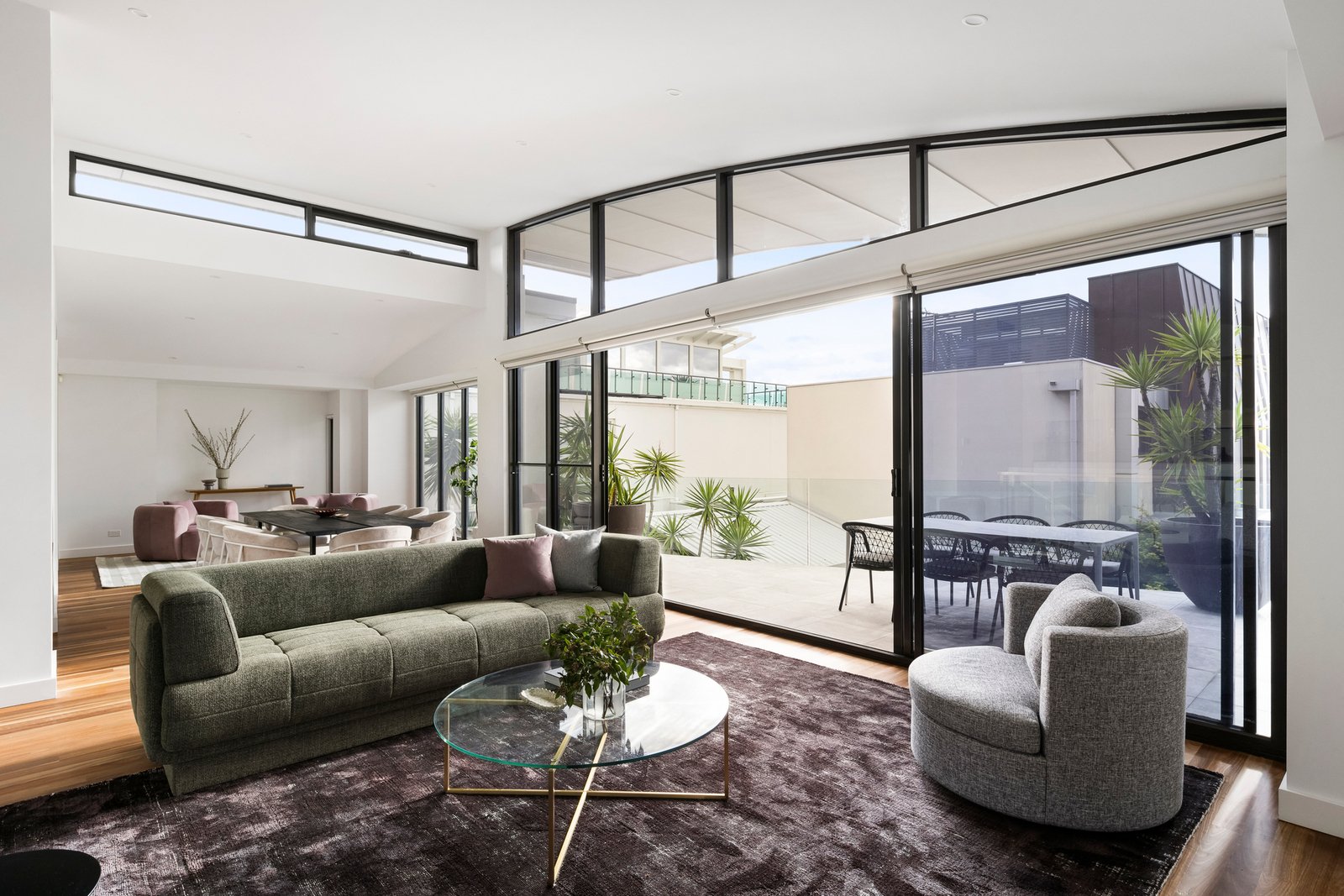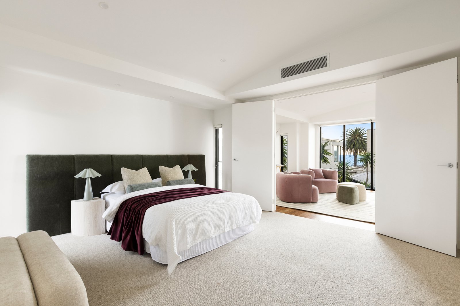 Brilliantly positioned, for direct water views of Middle Brighton beach and tranquilly rear-set away from Esplanade traffic, this luxuriously appointed and grandly proportioned three-bedroom Brighton residence has been architecturally designed to showcase breathtaking Bay vistas, and celebrates impressive entertaining and adaptable contemporary family functionality with two expansive living areas and two fitted studies.
