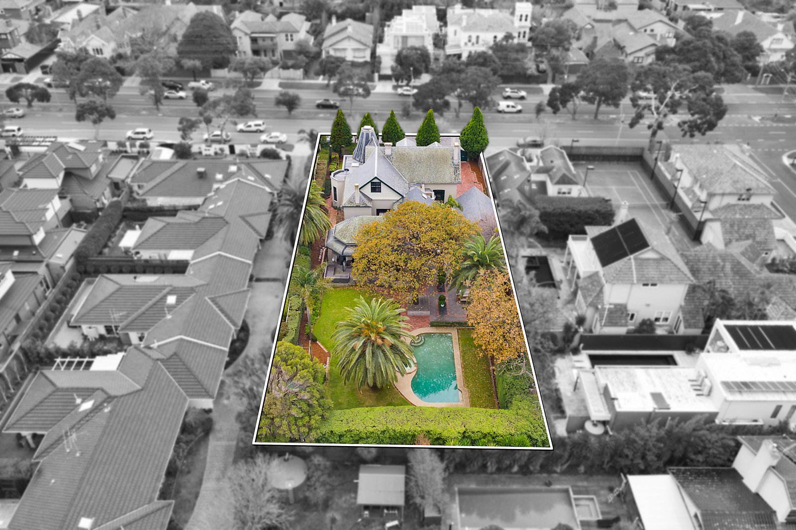 Showcasing palatial proportions, lavish finishes and evocative elegance, this landmark Brighton home c1889 , once part of Brighton Beach Girl's School, is set within spectacular garden and pool surrounds on approx.1598sqm. Superbly situated in one of Brighton's most coveted pockets just moments from the beach, local shops, cafes and Brighton Beach Station, with exclusive schooling nearby including Haileybury Brighton, St Leonard's College, Xavier College and Brighton Beach Primary School. Beyond an immaculate façade reflecting distinctive Victorian Italianate charm with a permit for a circular driveway already approved, the interiors reveal an impressive domed cathedral ceiling in the entrance foyer, accompanied by stunning period features throughout including coloured leadlight glass, arched sash windows and original fixtures. The versatile floorplan boasts a central light filled sitting room with marble open fireplace complemented by vast open plan living and dining with polished timber floors overlooking the breathtaking pool and gardens. The kitchen offers an abundance of storage including a walk in pantry, as well as quality stainless steel appliances comprising Bosch oven and dishwasher and Ilve gas cooktop. Outside presents plenty of space for relaxing and entertaining in style, highlighted by landscaped gardens providing supreme privacy, a heated salt water swimming pool and spa, a cubby house and children's playground. The gracious main bedroom features a stylish ensuite and walk in robe, while three additional ground floor bedrooms, two further bedrooms on the first floor and a teenager's retreat offer flexible accommodation options. Comprehensive appointments include two family bathrooms plus an external bathroom, spacious study or home office, plentiful storage including attic, well equipped laundry with side access, sauna, double garage, comprehensive security system, electric gates, ducted heating and split system air conditioning.