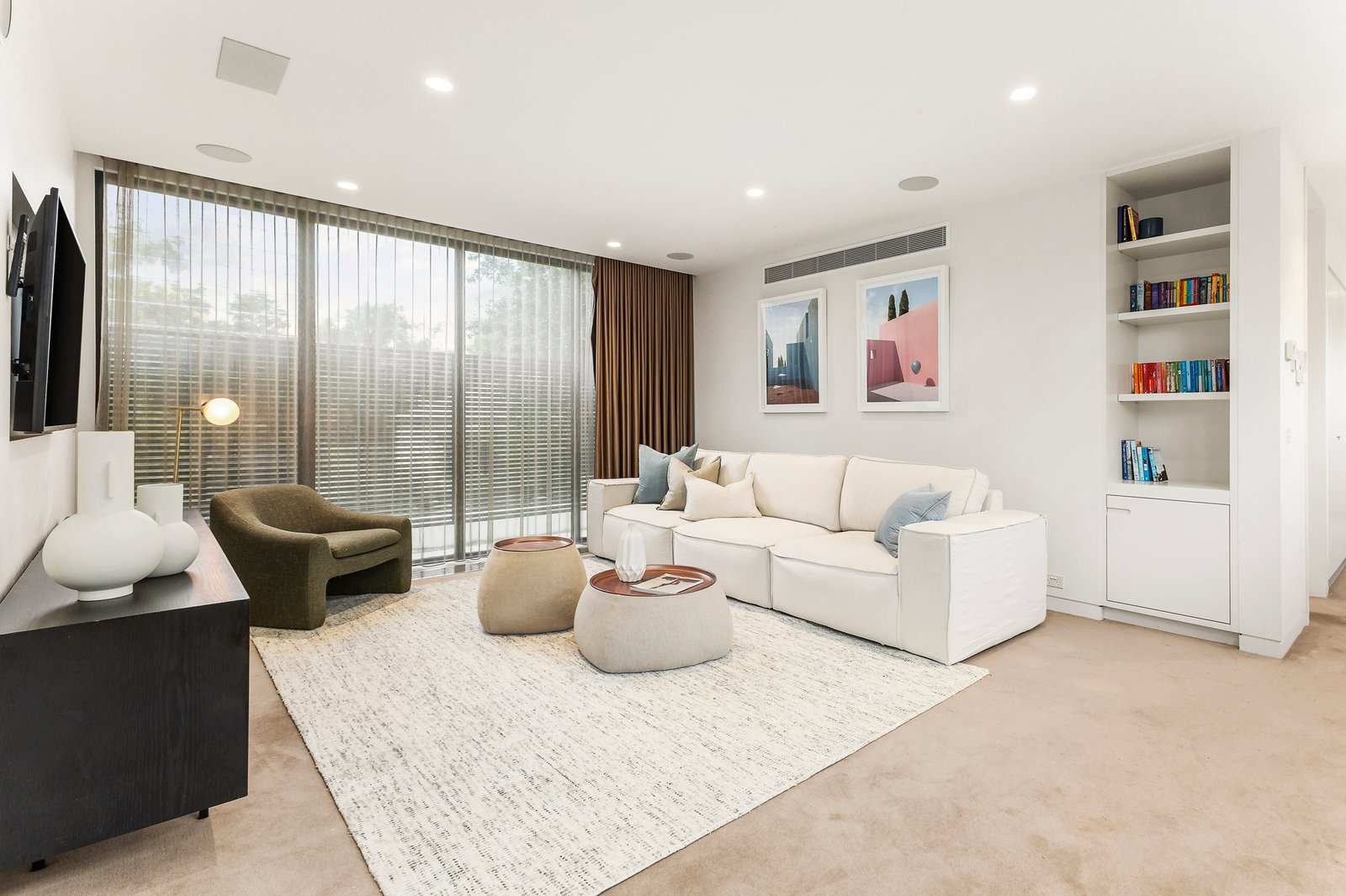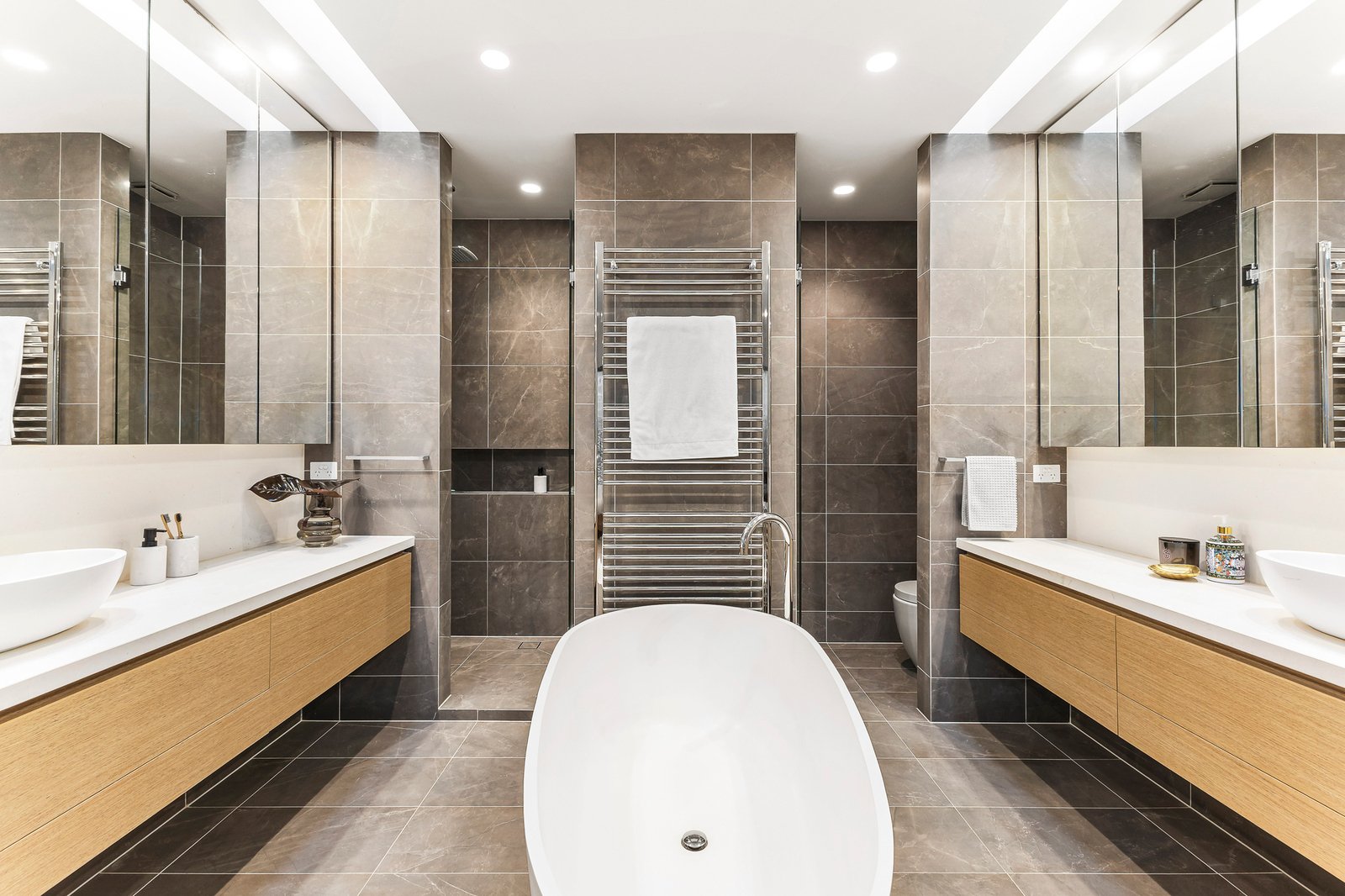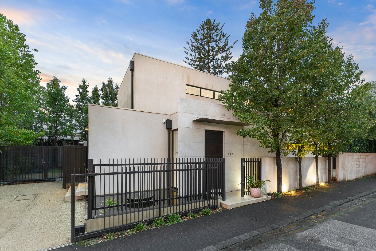 A state-of-the-art lifestyle sanctuary tucked away for optimum seclusion, this luxurious contemporary residence is a breathtaking, 2-level executive family oasis in a brilliant north-facing rear, low-maintenance setting. Leave expectations at the door and indulge in the designer interior’s spacious sophistication where CBUS home automation is just the beginning of a high-end, easy-care experience with the flexible 8-room layout enhanced by private, sun-filled gardens including entrance lily pond and north-rear BBQ deck. Lavished in Italian travertine with slab-heated oak flooring, an open-plan family living and dining zone with suspended fireplace and stacker doors adjoins a stunning Stone Italia kitchen with top-line European appliances and butler’s pantry. A dedicated home office/bedroom and separate TV lounge extend to a ground-floor bedroom (BIRs), bathroom and versatile rumpus or 5th bedroom (BIRs). Upstairs is a children’s retreat and 3 deluxe bedrooms all with ensuites including a beautiful main with BIRs/WIR and 2 with BIRs and desks. The level of detail throughout is breathtaking and also includes zoned hydronic heating and ducted air-conditioning, double-glazing, alarm/CCTV, speaker systems, push automation audio/visual, automatic blinds, copious in-built custom storage, natural ventilation, solar hot-water, lock-up shed, 15000l underground rainwater tank and automatic gate off-street parking. A rare discovery casting a striking modern aesthetic that’s quietly located just footsteps to parkland on the verge of the Camberwell Junction retail-restaurant precinct near leading schools, trams and train station.