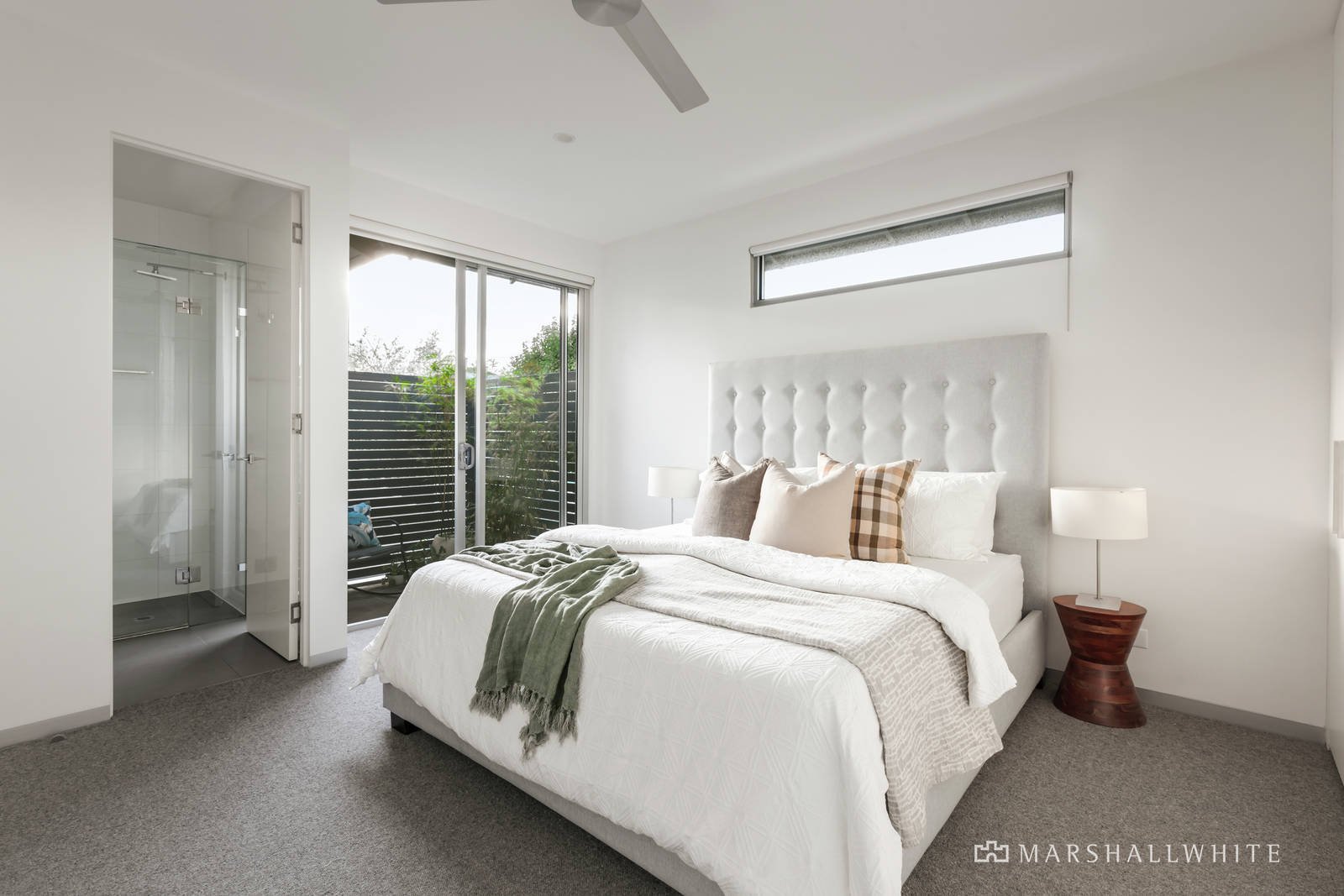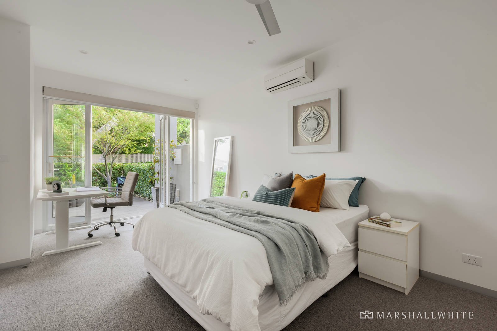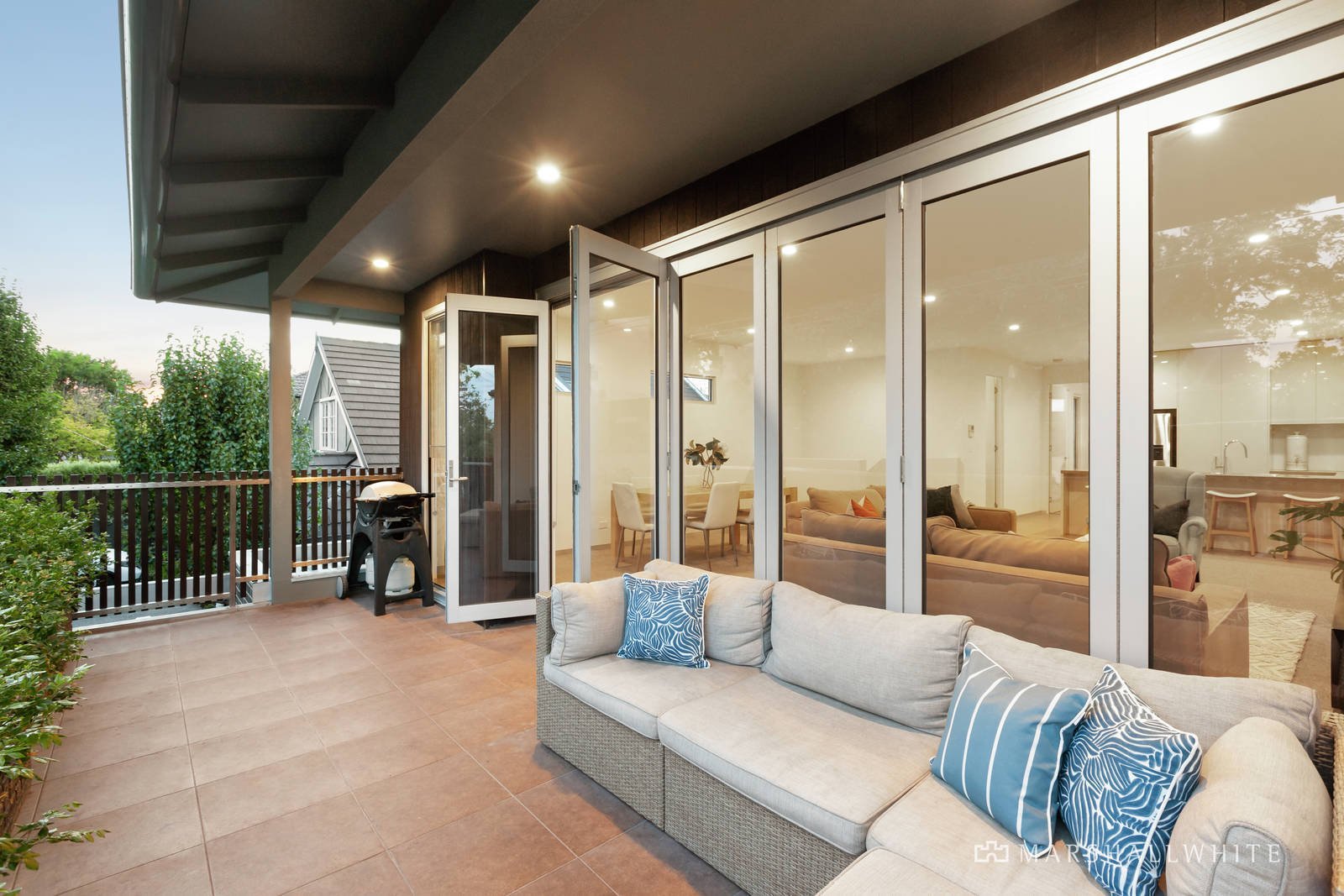 Fine craftsmanship by acclaimed builder Jake Gunther makes this stylish townhouse exceptional, metres to cafes, shops and public transport. The three-bedroom three-bathroom interior is first-class, from the spacious living and dining zone with leafy views to the choice of bedrooms on each level. Every room is impeccable, ready for you to move in and appreciate everything about this well-designed hideaway. Open the wall of bifold doors in the living zone and dine outdoors on the entertainer's terrace, and love the feel of living in the treetops thanks to the surrounding greenery. Quality is at the heart of the kitchen, featuring updated Bosch appliances, a recently installed plumbed fridge, and stone benchtops. Double-glazed windows provide energy efficiency and a sense of serenity, two ensuites and a bathroom are in great shape, and there's new carpets and paintwork. All the features you want in a premium home are here, including outdoor access from bedrooms, split-system-air conditioners, ceiling fans, garage and guest parking at your front door, and easy-care landscaping. Imagine the convenience of living around the corner from Hawthorn Road's popular restaurants, the old Cafe Marmalade soon to be a wine bar, shops and city-bound trams, and being able to walk to schools, Landcox & Hurlingham Parks in minutes.