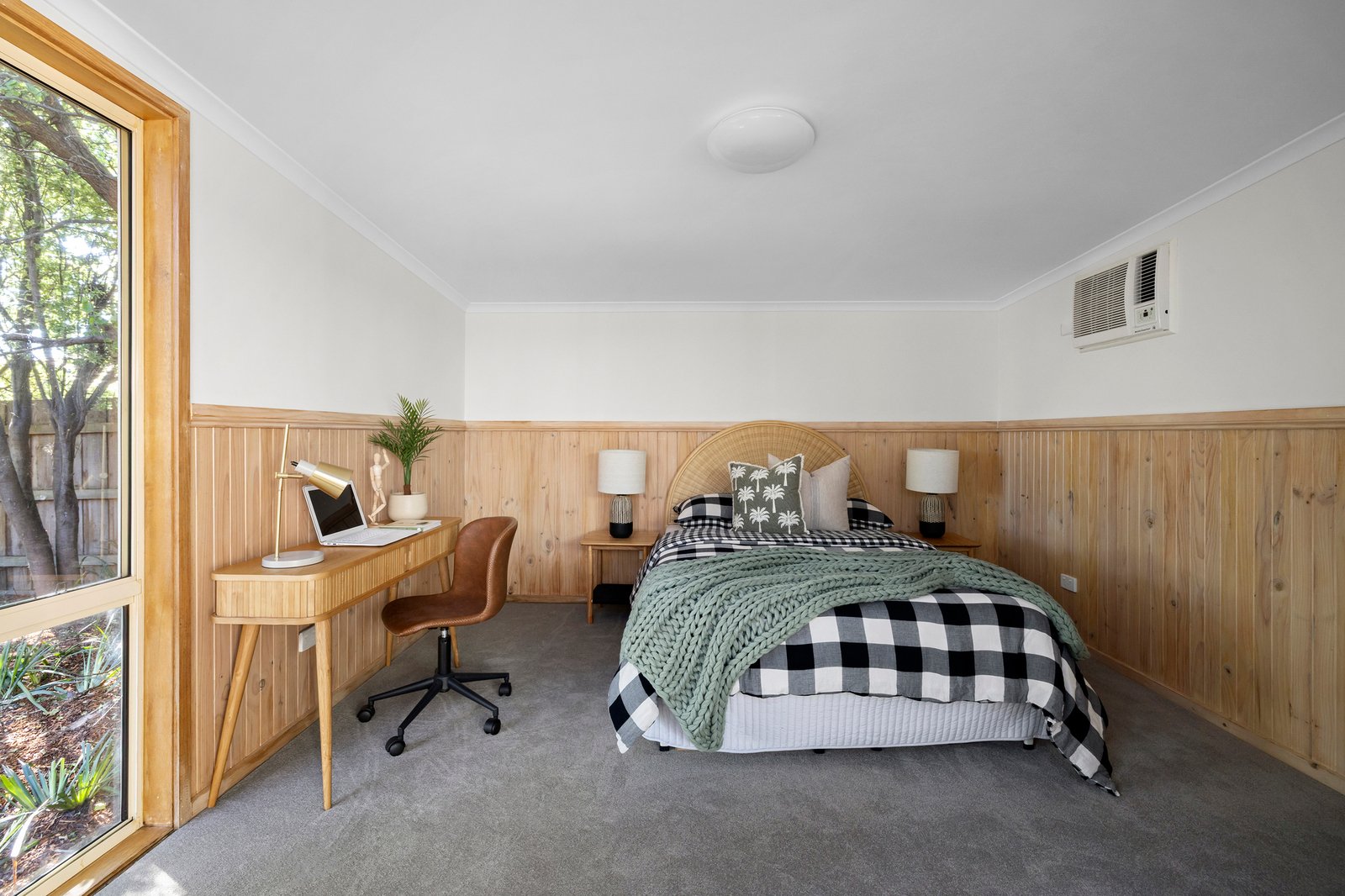 On the market for the first time in more than thirty years, the classic brick circa-1970s home has been well-maintained, recently having new guttering installed, while inside a fresh neutral colour palette and newly laid quality carpets enhance the neatly presented interiors. The zoned layout comprises a main bedroom at the front of the home, with a walk-in robe and shower ensuite, a light-filled living area, along with dining area and a well-equipped central kitchen with a gas cook top, oven and recently installed dishwasher. The additional two bedrooms are zoned in the rear section along with the family bathroom with built-in tub and shower. A paved undercover alfresco zone links the house with the studio, also newly carpeted and air-conditioned, offering potential usage as teenager or guest accommodation, while the adjoining converted carport presents an ideal workshop or ’man-cave’ space. The rear gardens are neatly landscaped with established borders including ornamental pear trees providing privacy and serenity, while a kids’ cubby house and a garden shed add to the amenity, and there also is semi-undercover driveway parking for two cars.