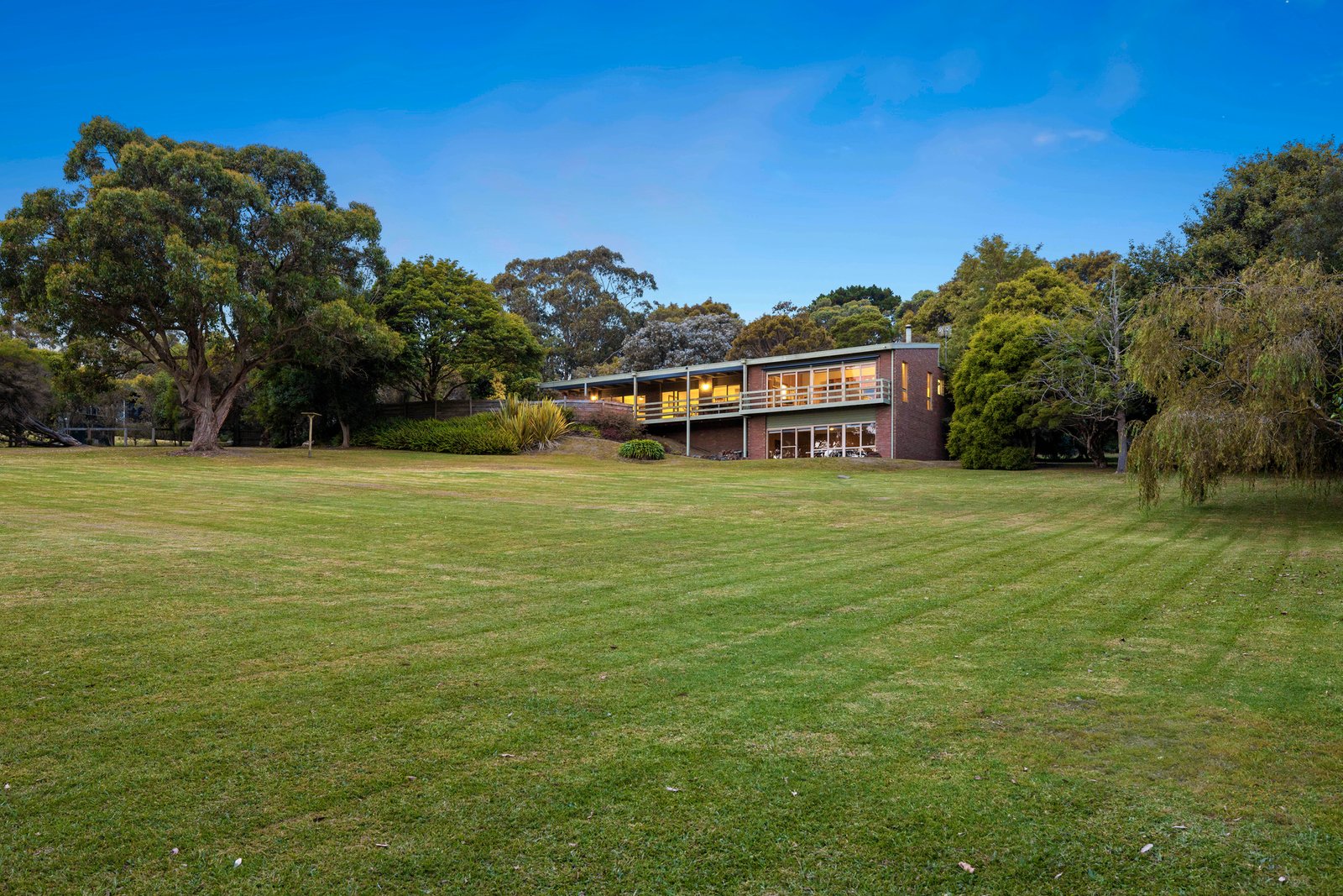 Set against a whisper-quiet backdrop with views of Port Phillip Bay in the distance, this solid family classic on approximately 5 acres offers undeniable warmth, lifestyle preservation and an exciting look to the future. Set over two brilliantly conceived levels, yet also perfect for single-level dwellers, the home’s early 80s design reveals an entirely functional floor plan with modern updates and oversized living spaces designed to capture the incredible scenery.