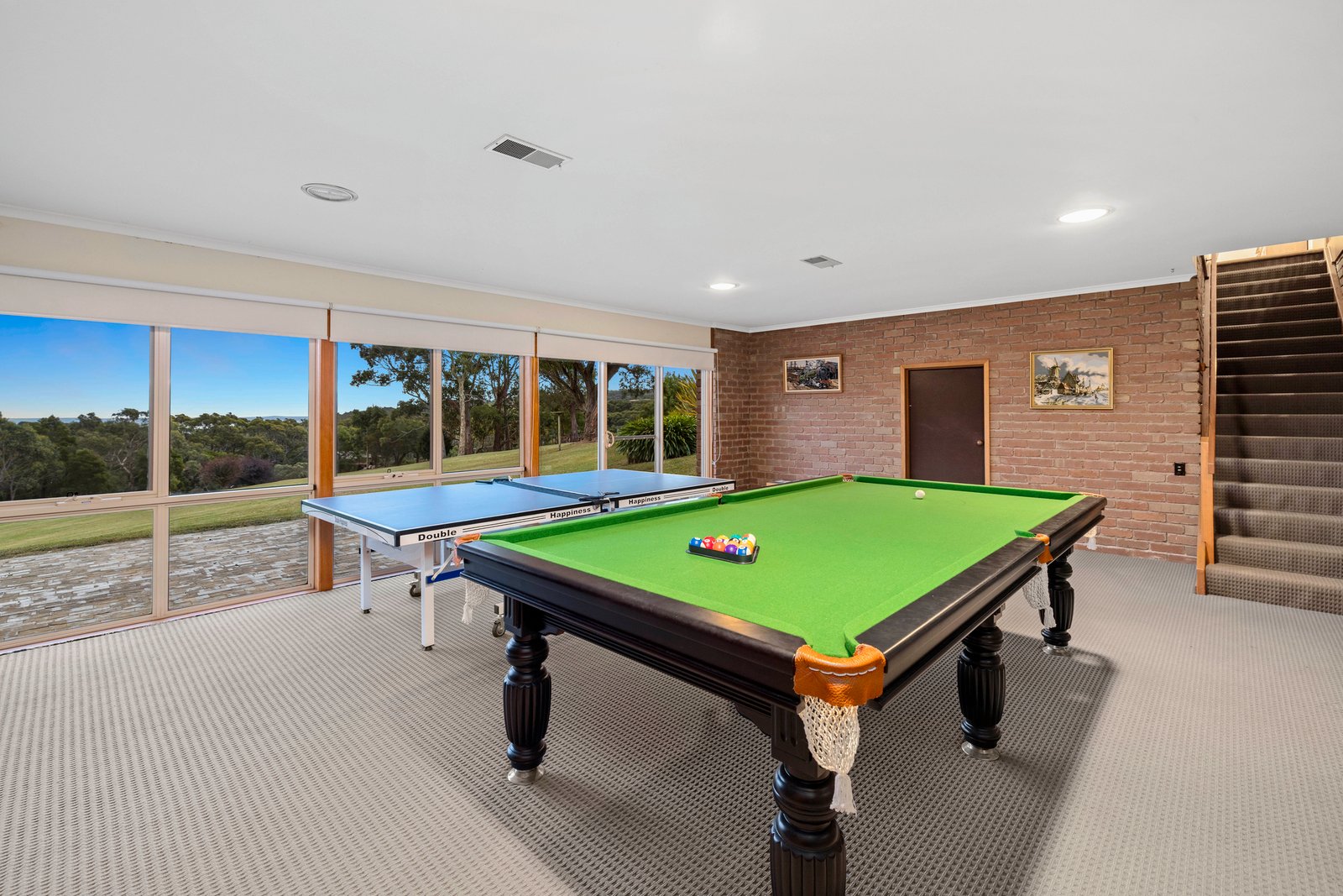 Downstairs, a huge recreation/billiards room delivers versatility as a bunk room, guest suite or second living area, opening to the garden and brick-paved terrace for indoor-outdoor bliss. Outside, there’s space to live how you want to - with rolling lawns, a seasonal dam, a shed and a comprehensive covered verandah providing the perfect spot to unwind and take in the surroundings.