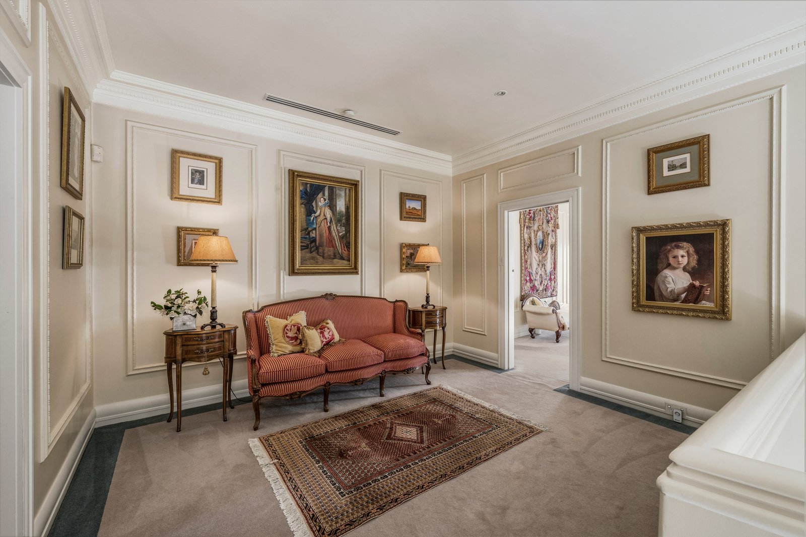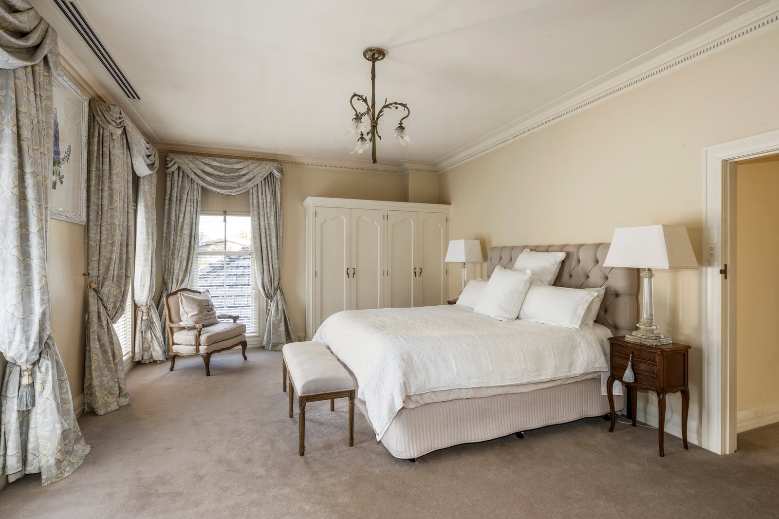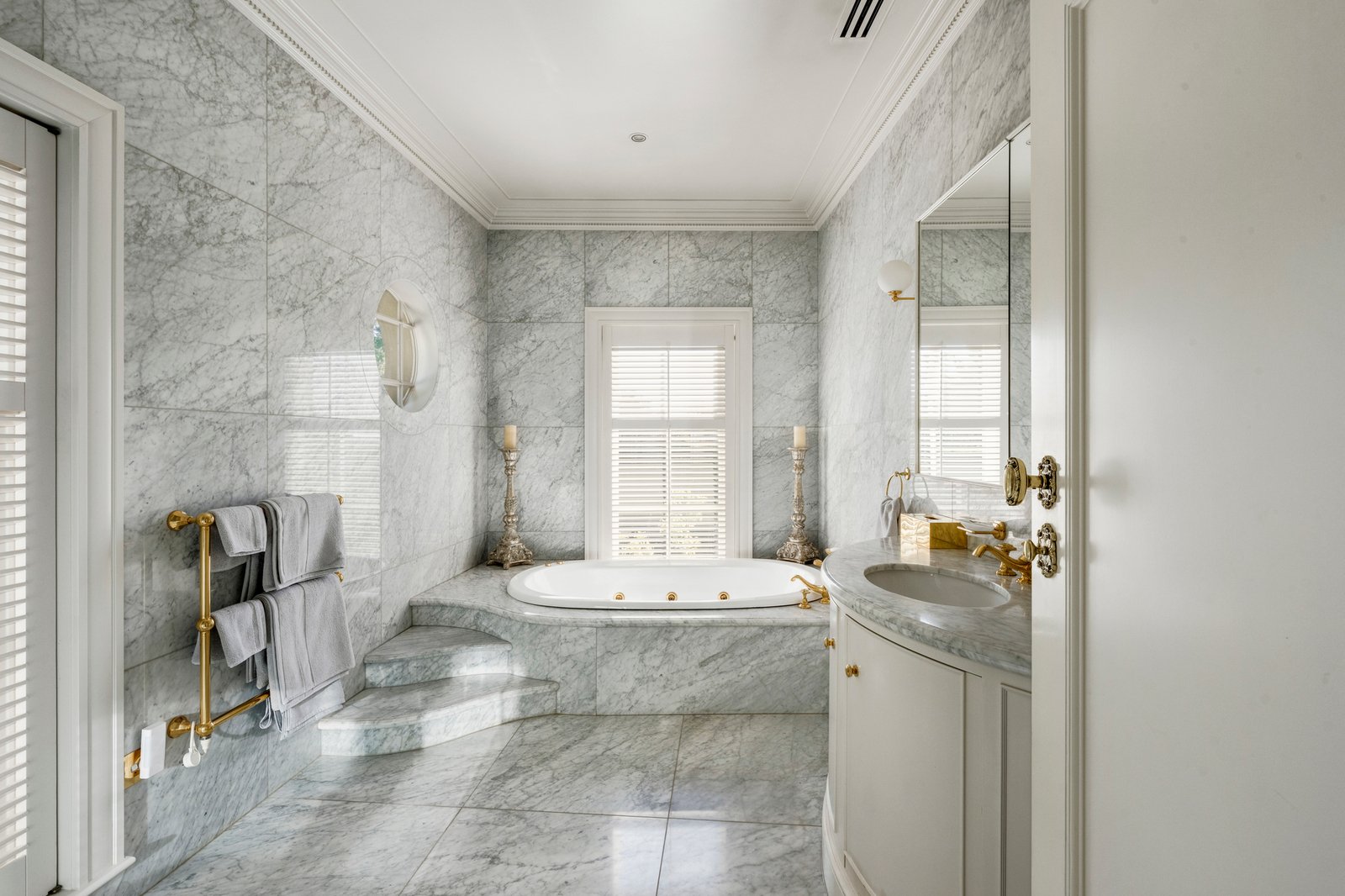 Additional accommodation includes two robed bedrooms and a central marble bathroom upstairs, alongside a substantial main suite with panoramic city views, a dressing room, a marble-lined ensuite, and a private balcony. Complete with a four-car garage, a dedicated workshop, wine cellar and sunlit attic storage, and appointed with integrated security, irrigation and ducted heating and cooling, it delivers an enviable lifestyle proposition, moments from Glenferrie, Malvern and Toorak Road shopping precincts, leading schools, CityLink access and public transport.