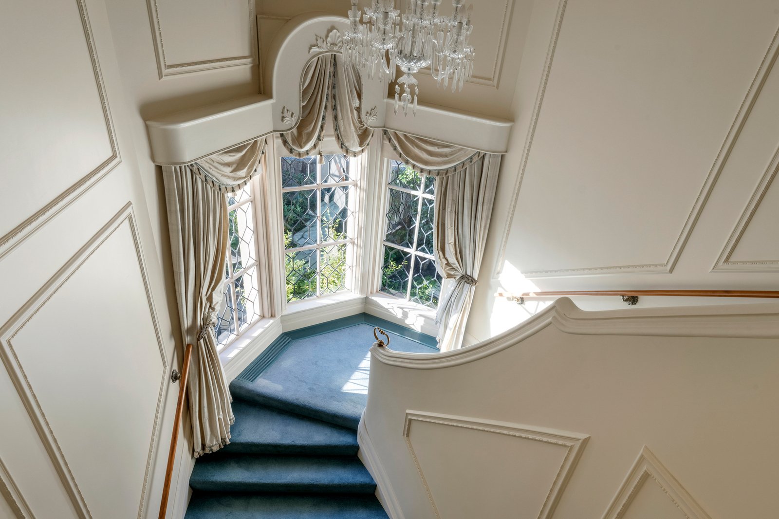 Among the most historically significant homes within the Stonnington Estate, and offered for the first time in almost 40 years, this remarkable 1933 residence by celebrated architect Harold Desbrowe-Annear holds a level of architectural importance rarely presented to the market. Encompassing approximately 1,400sqm, with gardens originally conceived by Desbrowe-Annear and later refined by Paul Bangay, a sweeping cobblestone drive and porte cochere establish a sense of arrival, directing focus to the landmark façade, defined by arched windows, circular oeil-de-boeuf openings, and intricately modelled stucco garlands that form a signature of the home’s design.
