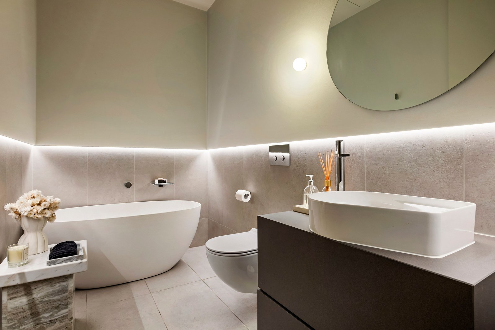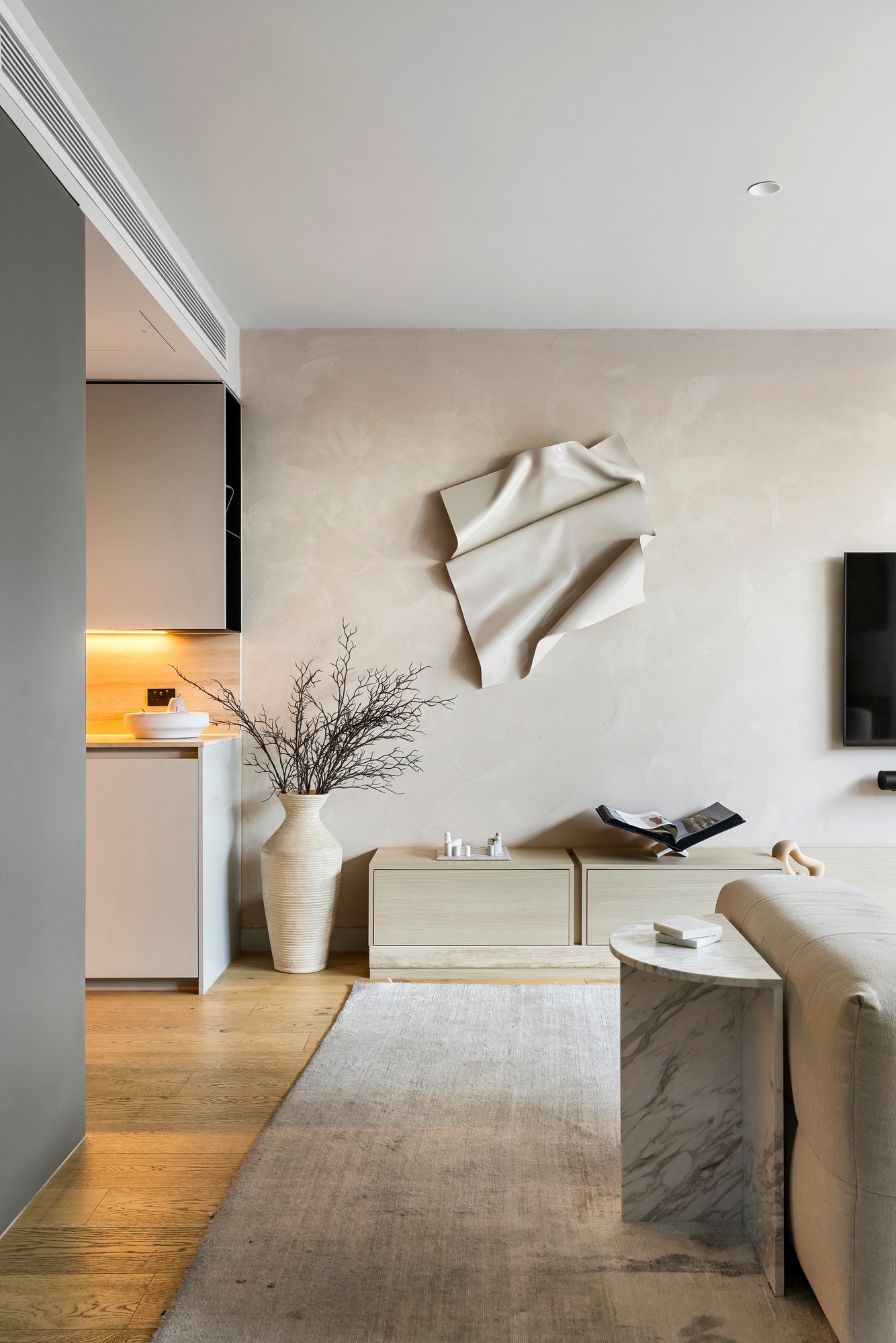 Thoughtfully designed ambient lighting enhances both everyday living and entertaining, complemented by a fully equipped kitchen featuring a premium suite of Gaggenau appliances.