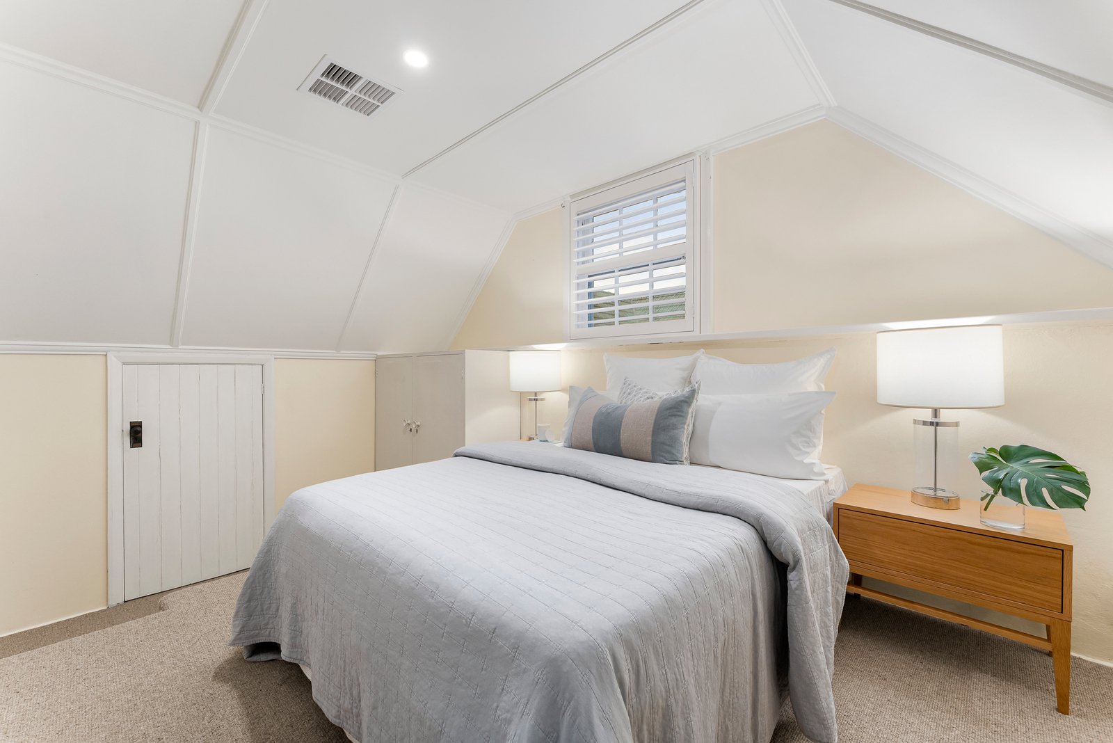 Upstairs, four bedrooms are perfectly zoned for family life. The expansive, northerly sunlit main suite is complemented by a dressing area with walk-in and mirrored robes, and a skylit ensuite with dual vanities and a separate WC. A rear bedroom with its own ensuite enjoys a garden outlook, while two further bedrooms, one with a charming vaulted ceiling and the flexibility to serve as a private study, share a central bathroom with a bathtub.