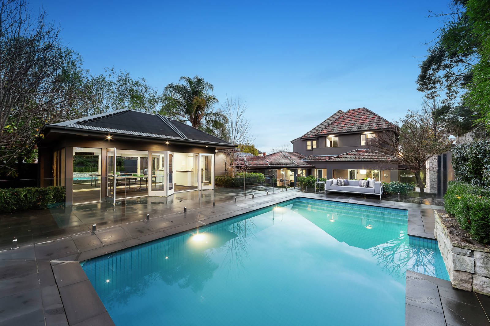 Superb zoned family living and entertaining spaces over two levels include polished timber floors flowing past a formal sitting room with adjoining dining, a fitted office and a downstairs bedroom. Whilst a further four bedrooms are situated upstairs, where the main has a balcony, BIRs, WIR and an ensuite; a second bedroom also has an ensuite whilst the remaining bedrooms share a family bathroom and rear balcony. Family living and entertaining is perfectly catered for in an expansive family domain incorporating a sleek kitchen with prestige Gaggenau & Miele appliances, adjacent laundry and bathroom. All opening through French doors to a covered outdoor alfresco dining area with a built-in barbeque kitchen overlooking an upper-level pool plus an adjoining pavilion/rumpus room & bathroom - perfect for indoor/outdoor relaxed summer living. Other features include alarm, hydronic heating, R/C air conditioners, heated alfresco area, surround sound, Plantation shutters (upstairs bedrooms), ample storage, sprinkler system and double carport.
