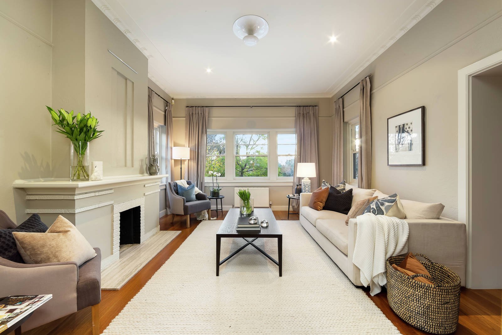 Boasting an impressive elevated position with a wide frontage, leafy outlooks and City skyline views, this stylish and spacious period family residence is introduced by a distinctive façade framed by ornamental trees and neatly clipped hedging.