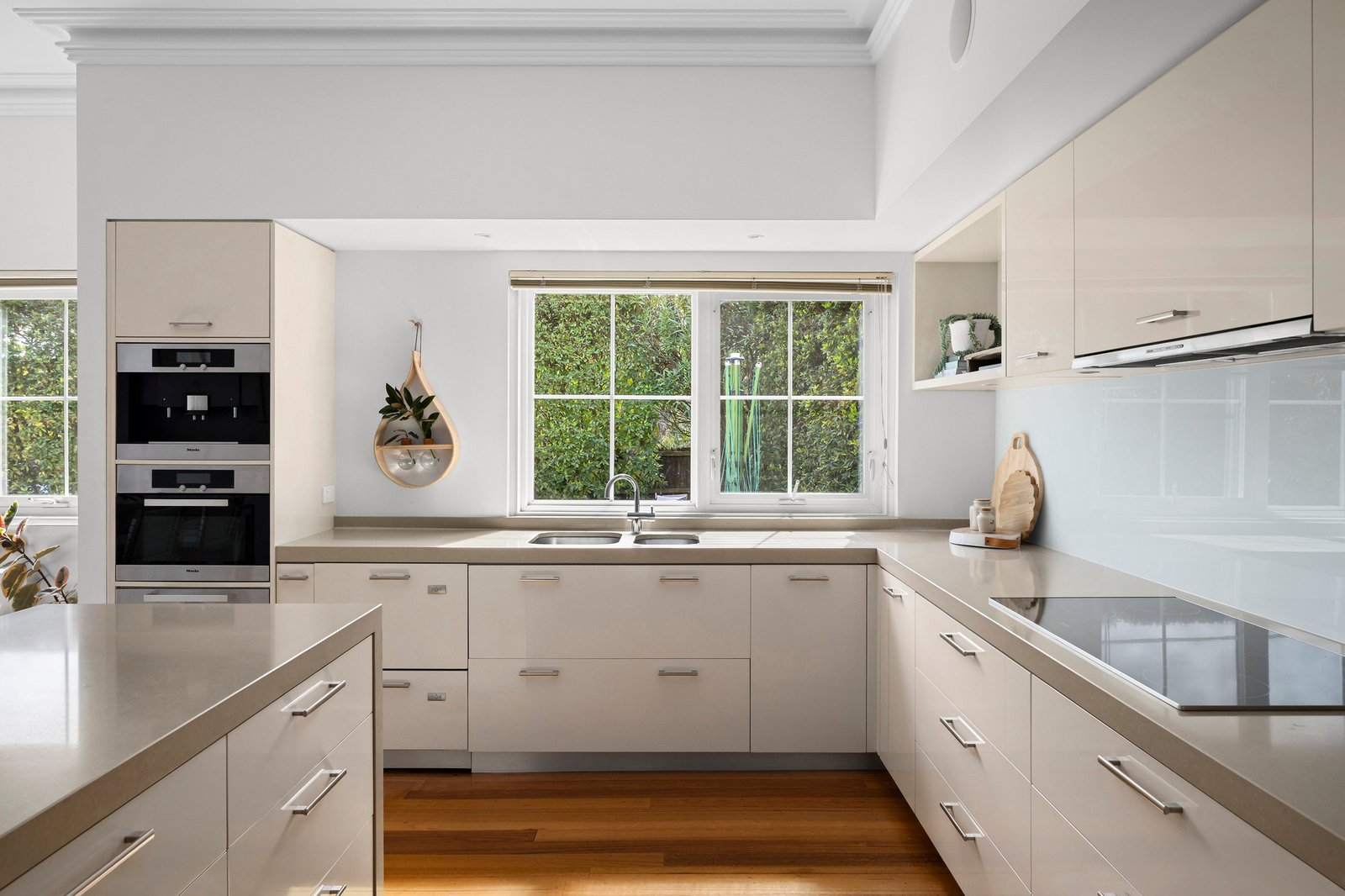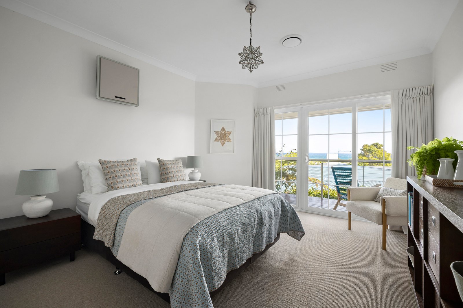 Adaptable and flexible to suit zoned multigenerational family living and entertaining, the floorplan incorporates five bedrooms and four bathrooms (two ensuites), and a sunroom/study. The indulgently proportioned upper level master bedroom has breathtaking views that span from the bush to the Bay, and a shower ensuite, while another two upper level bedrooms also enjoy water views and balcony access. The downstairs bedroom with ensuite bathroom is ideally positioned for guest or teenage accommodation, or could serve as an additional living space/study. Additional features include central heating, air conditioning in the master and second bedroom, ceilings fans in the other upstairs bedrooms, plenty of built-in storage cabinetry including under stair storage, and a roller door storage shed with side street access, perfect for boards and beach gear.