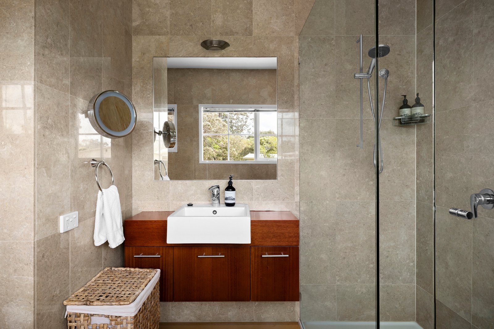In this tightly held, idyllic lifestyle location on the edge of the Balcombe Estuary reserve, where you can step on the boardwalk to the Briars, the home is opposite the Bowls Club, Petanque Club, and pre-school, and it’s just moments to the sports field, dog park, beach and Mount Martha Life Saving Club as well as the boutiques and eateries of the Village.