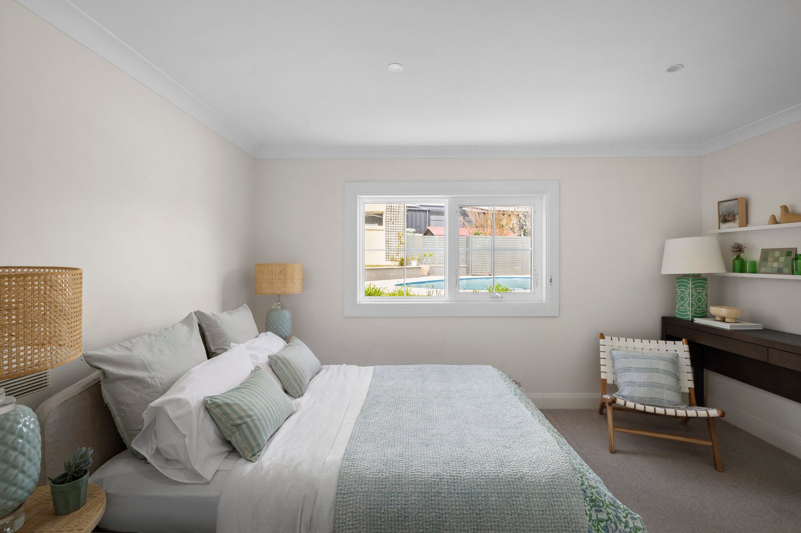 Recently and fully landscaped, the rear alfresco area incorporates an undercover entertaining area and the solar heated in-ground swimming pool, which is set in travertine surrounds. There is a garden shed, three water tanks, another large mod-grass lawn area, lush garden beds, fruit trees, and the double garage with remote operated doors and side street access.