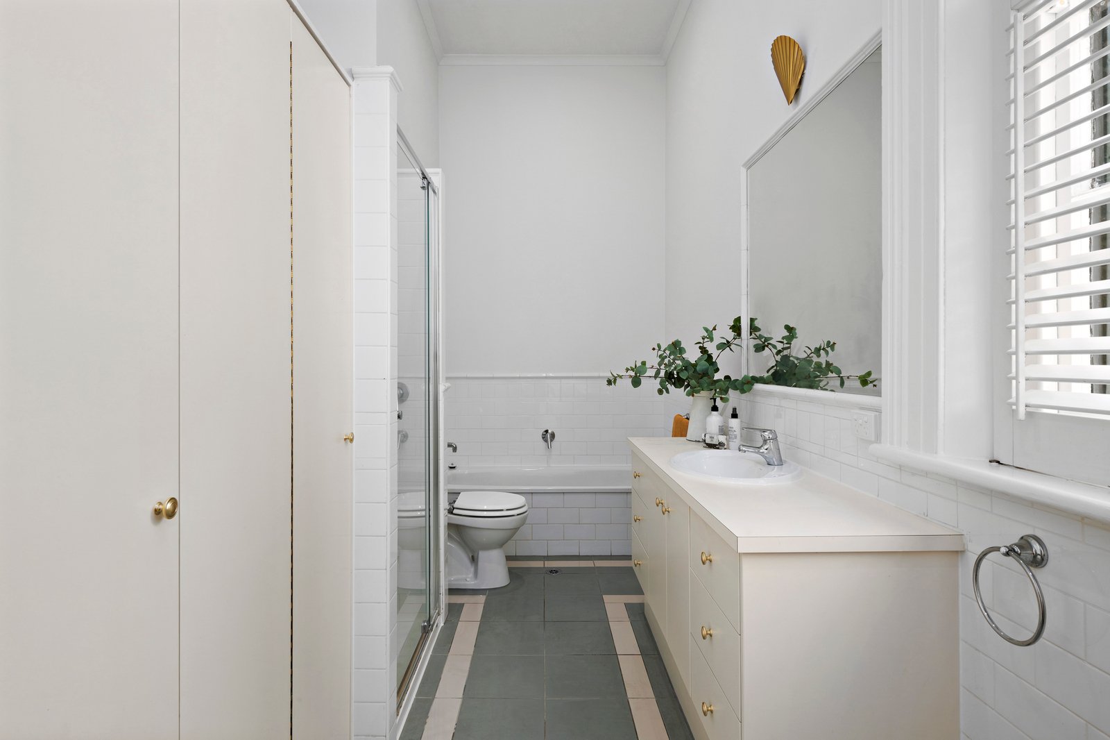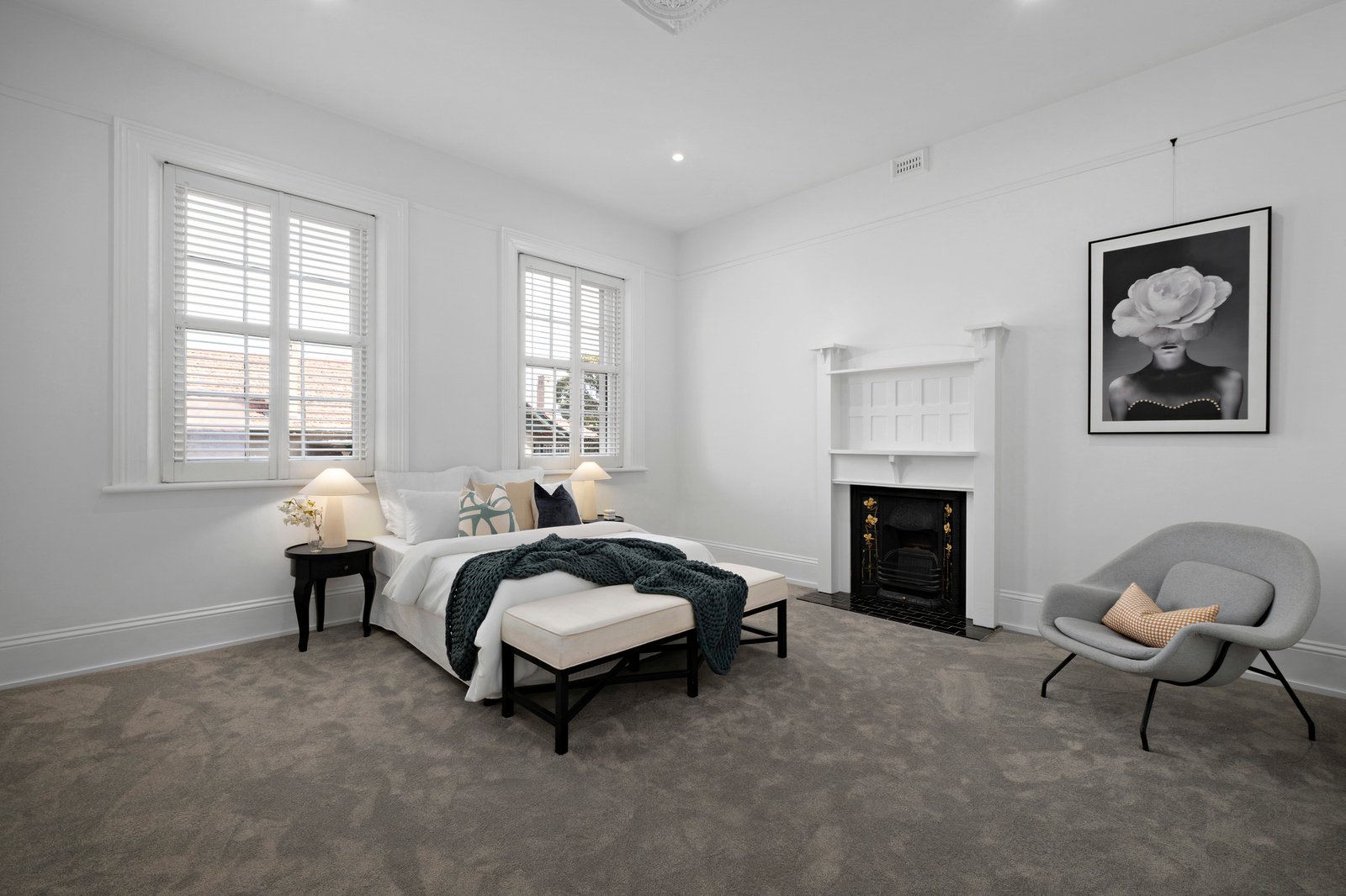 Introduced via a vast, undercover and north-facing entertainers’ terrace the home opens to a huge entrance hall where honey coloured Baltic Pine flooring, leadlight windows and towering ceilings are almost overwhelmed by the sheer scale and light of the home. A modern subway-tiled kitchen extends to a huge lounge / dining that is warmed by a traditional fireplace, whilst each of the bedrooms – two with robes and a third with another fireplace – are all proportioned to emphasise the home’s origins as mansion of historical significance. Securely gated with carport parking and visitor parking, this is an exceedingly rare offering completed by hydronic heating and a security alarm.