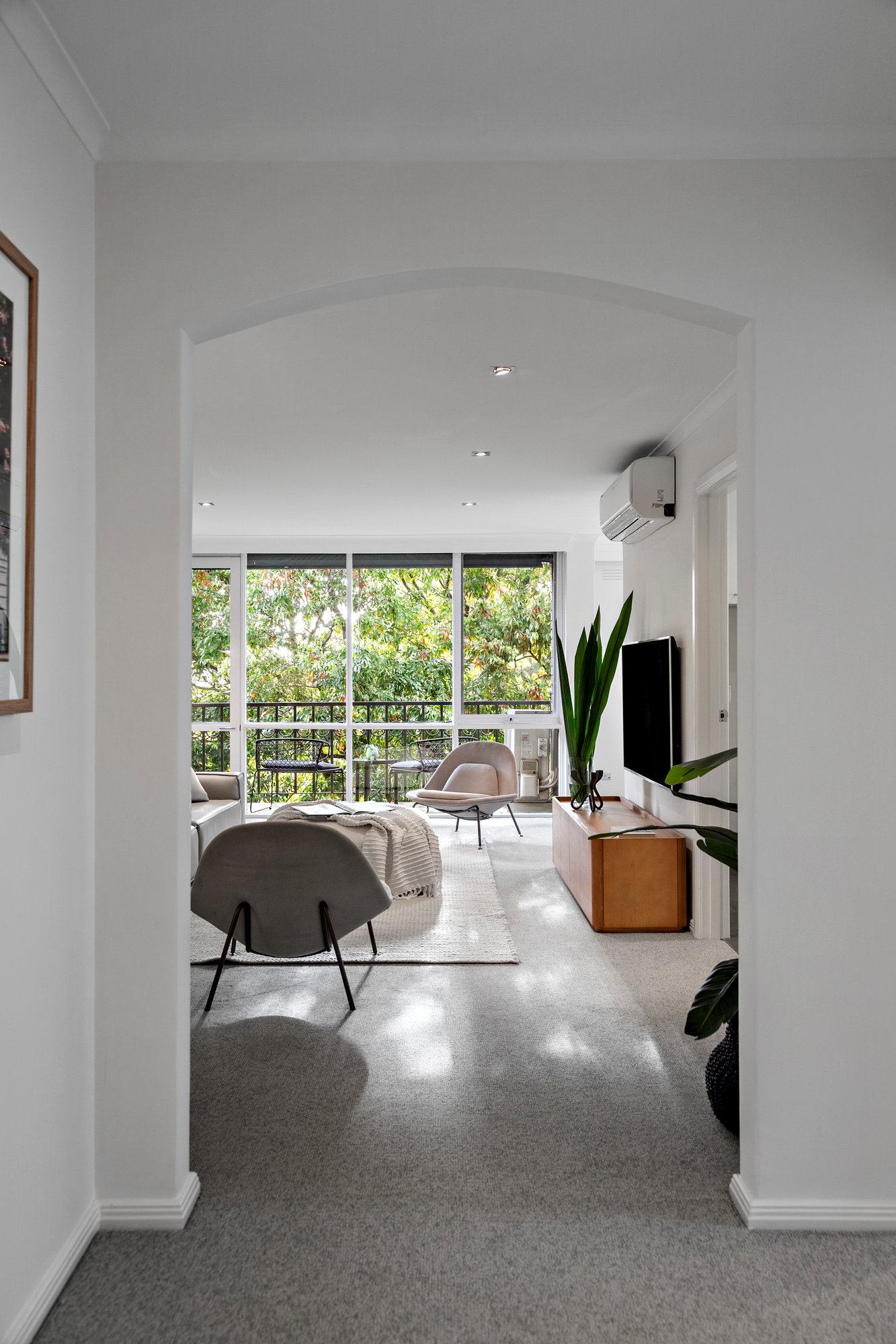 Exclusively situated on the cusp of Toorak Village, this timelessly renovated, three bedroom, two bathroom apartment merges its expansive mid-century sense of proportion with a modern, open and airy freshness, to create an uplifting home that is a pure joy to live in. Perched atop a boutique, low-rise collection of just nine with undercover parking, this is a second floor / top floor classic, set among the treetops, remarkably peaceful and certain to exceed expectations.