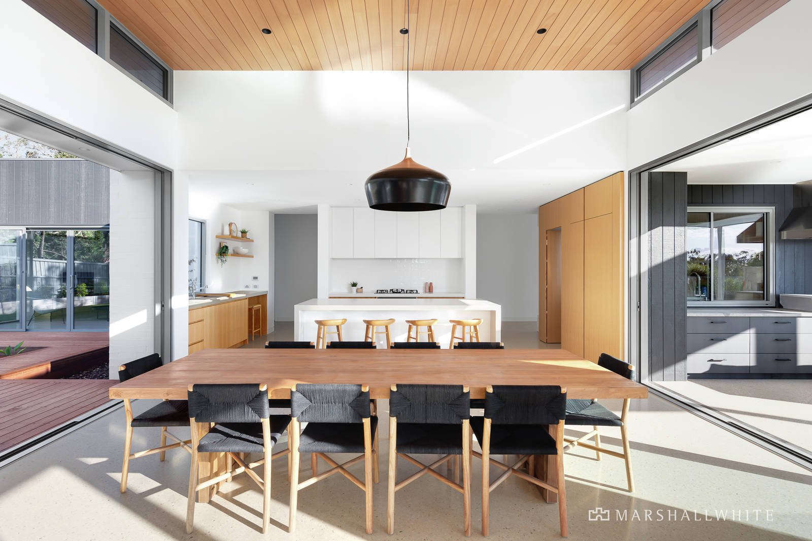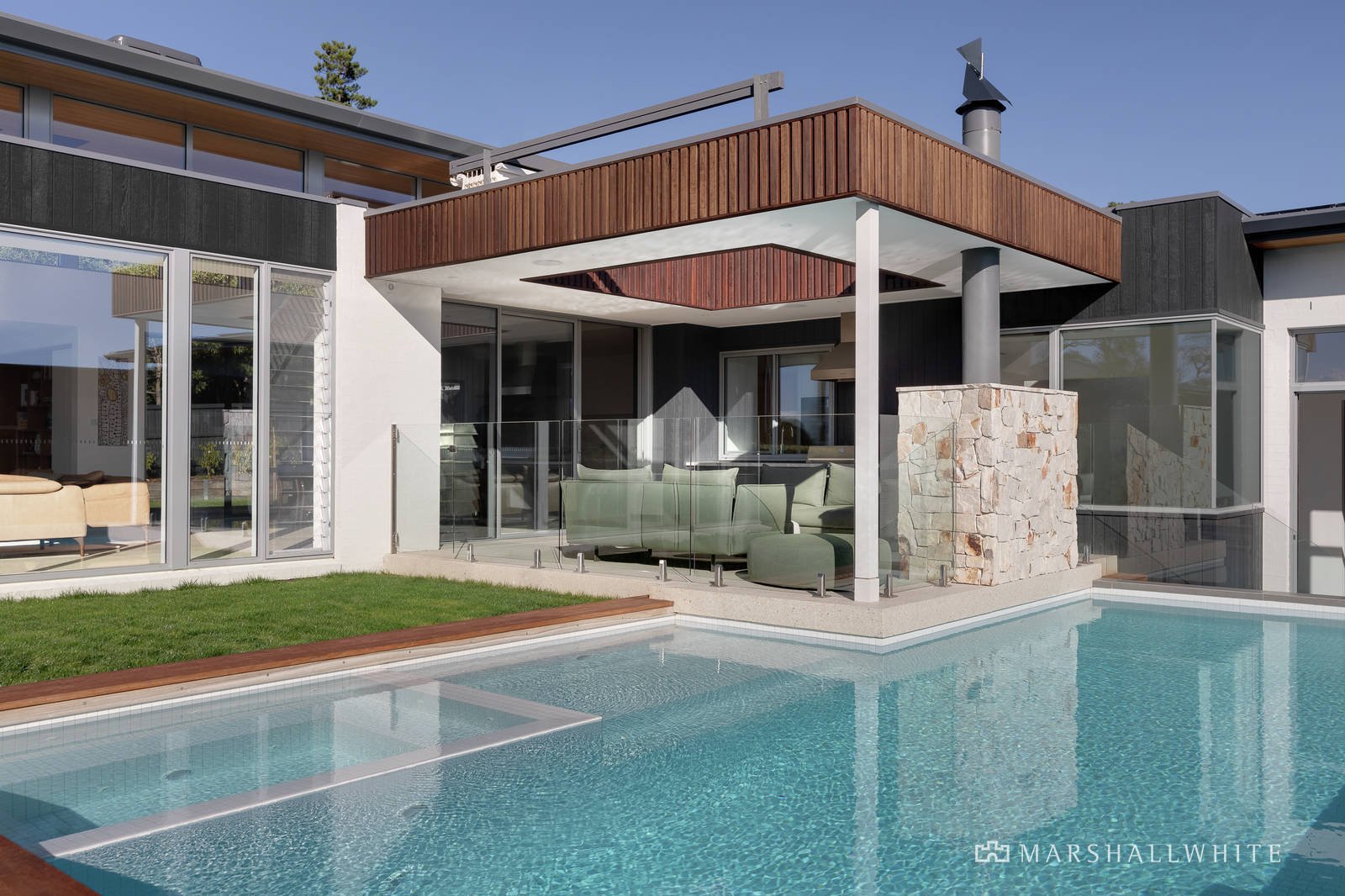 A refined approach to design, complemented by the use of Australian Grey Ironbark timber, Innamincka natural stone and polished river stone floors, together with the consideration of space, light and the central infinity pool, curates a seamless fusion between indoor and outdoor environments, while a prestigious cul-de-sac position ensures peace and privacy.