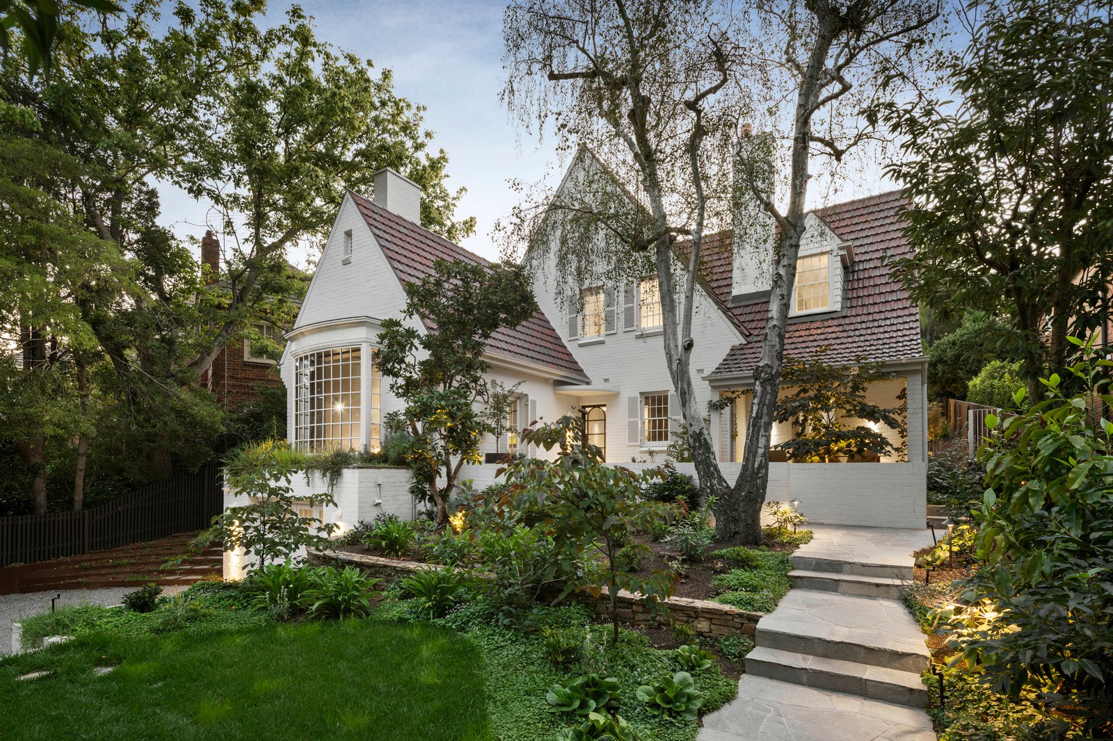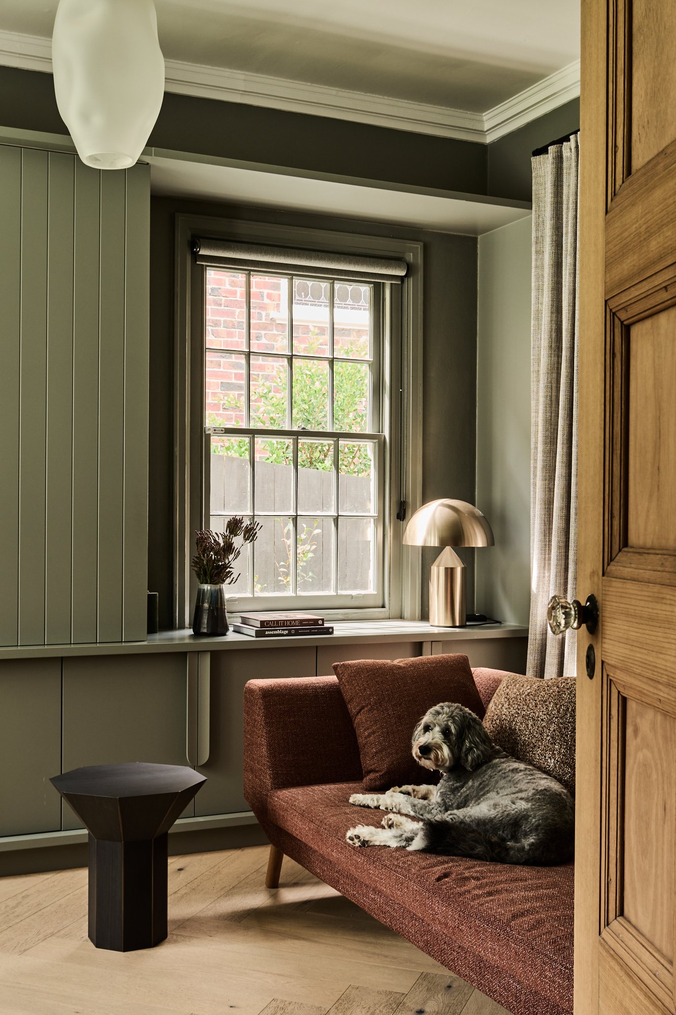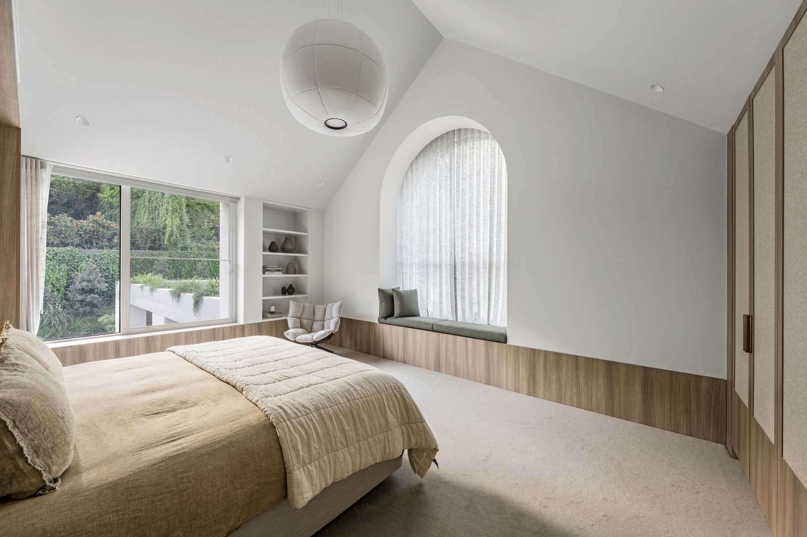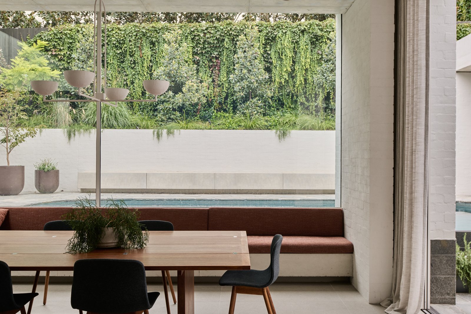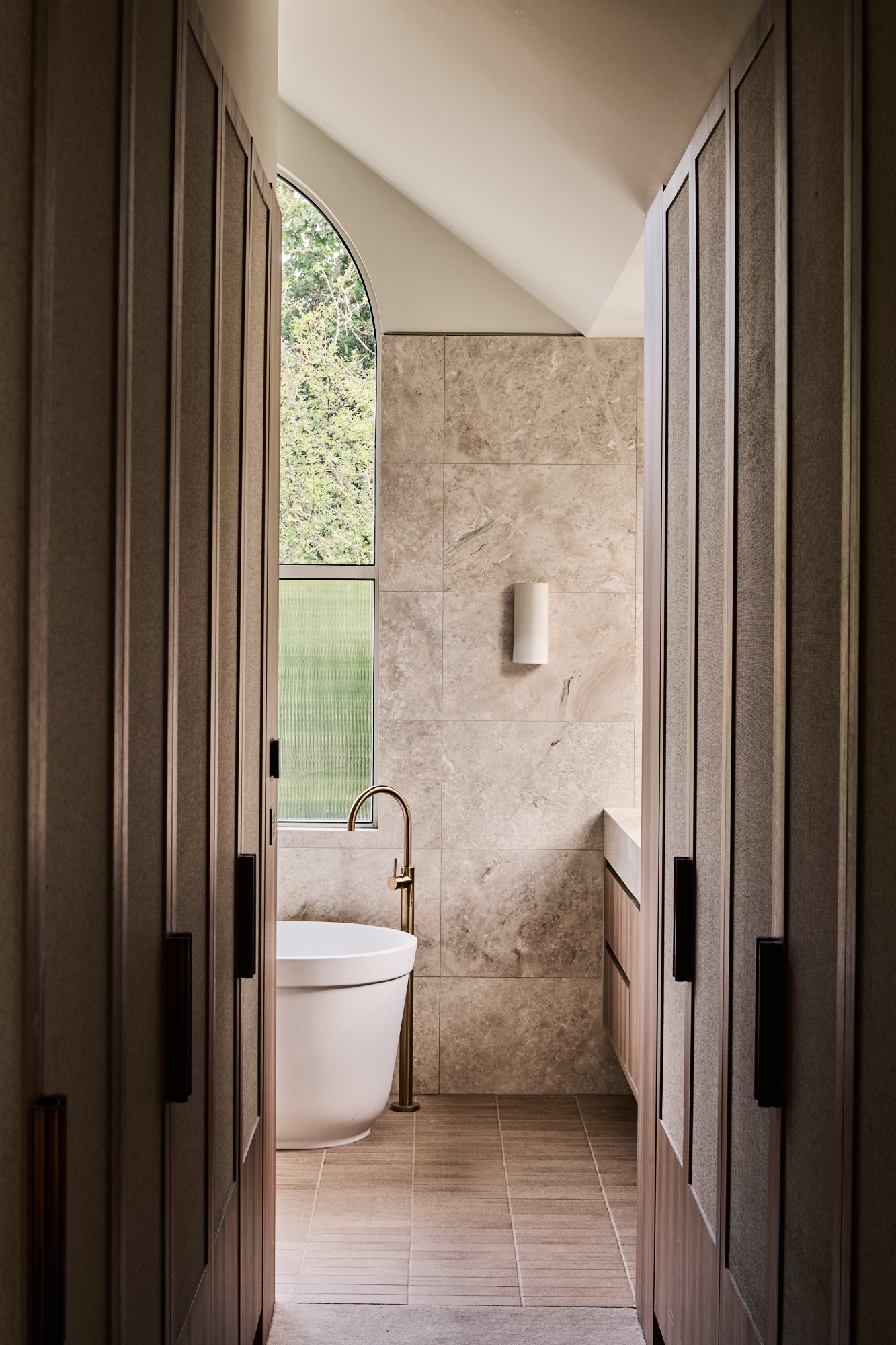Originally conceived in the 1930s by renowned Melbourne architect Charles N Hollingsworth and now a recently completed innovative renovation and architectural vision by David Neil and the team at Neil Architecture, this Stonington Estate address delivers a compelling composition of heritage and modern contemporary design, set within established gardens by Eckersley Landscape Architecture. Respect for its origins sits alongside a highly considered material direction, where feature lighting by Ross Gardam and Anna Charlesworth, Faucet Strommen tapware and stone and marble selections from Artedomus accentuate the finish. A palette of tobaccos, mustards and deep olive tones carries throughout, giving each space continuity, while herringbone oak floors guide movement through the interiors, with steel-framed glazing and softened architectural curves referencing the past, keeping the dialogue between old and new.