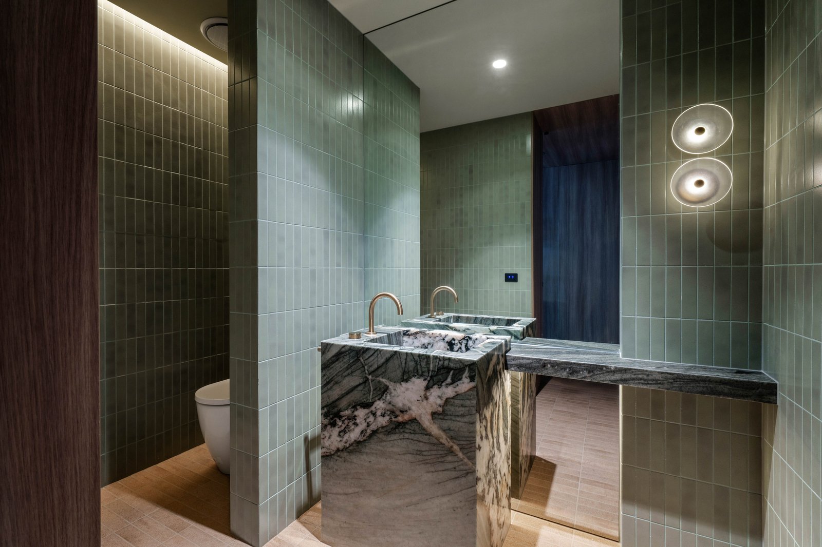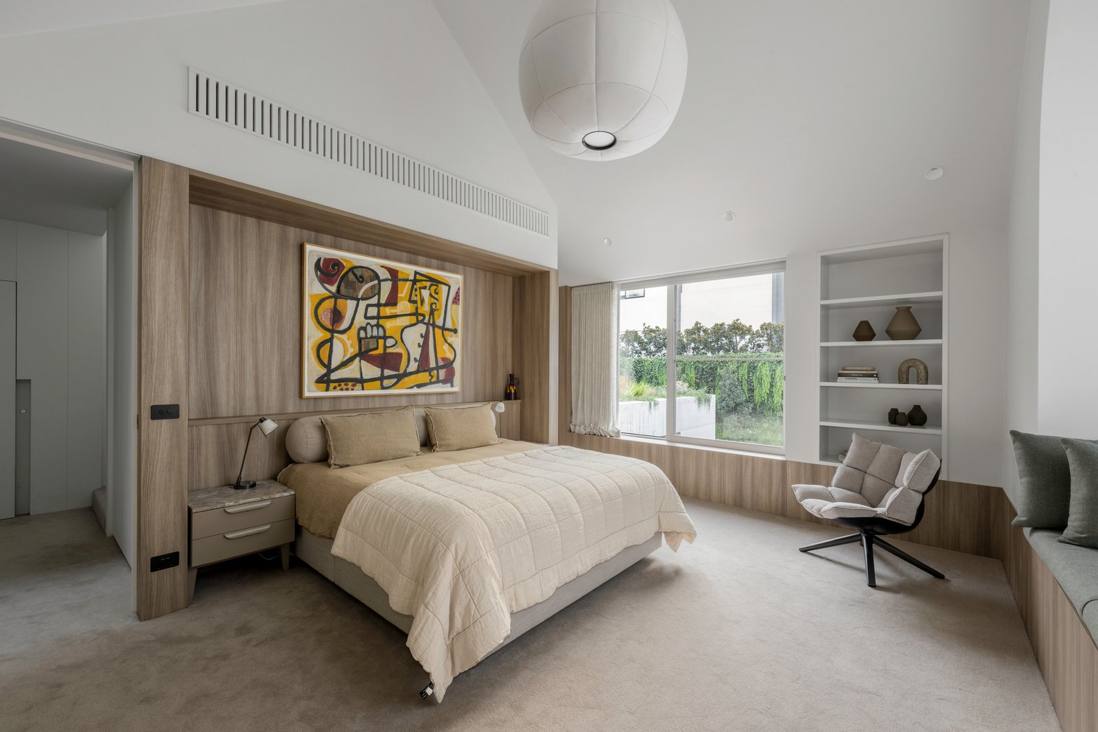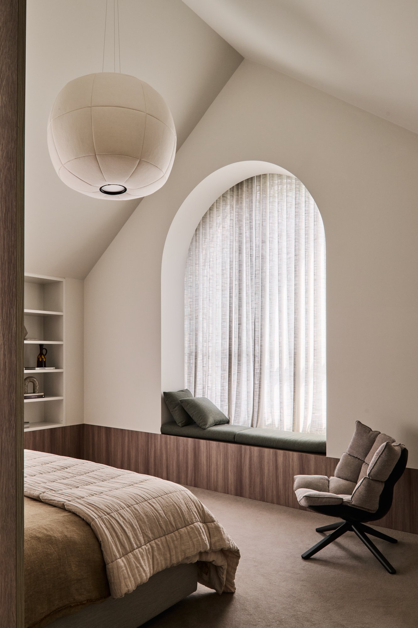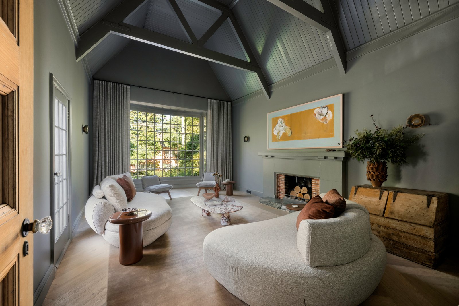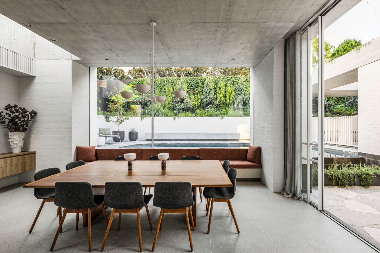 Originally conceived in the 1930s by renowned Melbourne architect Charles N Hollingsworth and now a recently completed innovative renovation and architectural vision by David Neil and the team at Neil Architecture, this Stonington Estate address delivers a compelling composition of heritage and modern contemporary design, set within established gardens by Eckersley Landscape Architecture. Respect for its origins sits alongside a highly considered material direction, where feature lighting by Ross Gardam and Anna Charlesworth, Faucet Strommen tapware and stone and marble selections from Artedomus accentuate the finish. A palette of tobaccos, mustards and deep olive tones carries throughout, giving each space continuity, while herringbone oak floors guide movement through the interiors, with steel-framed glazing and softened architectural curves referencing the past, keeping the dialogue between old and new.