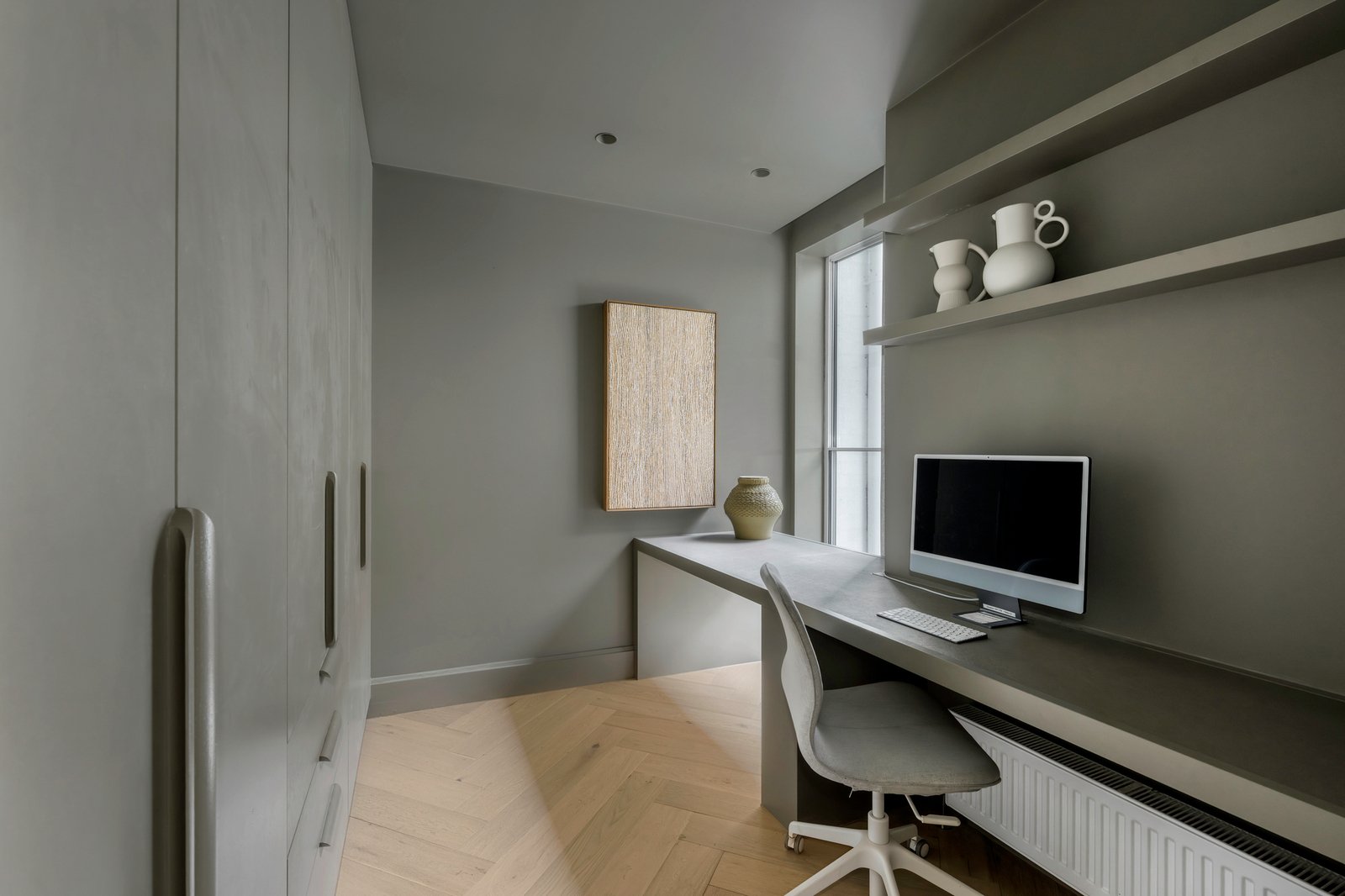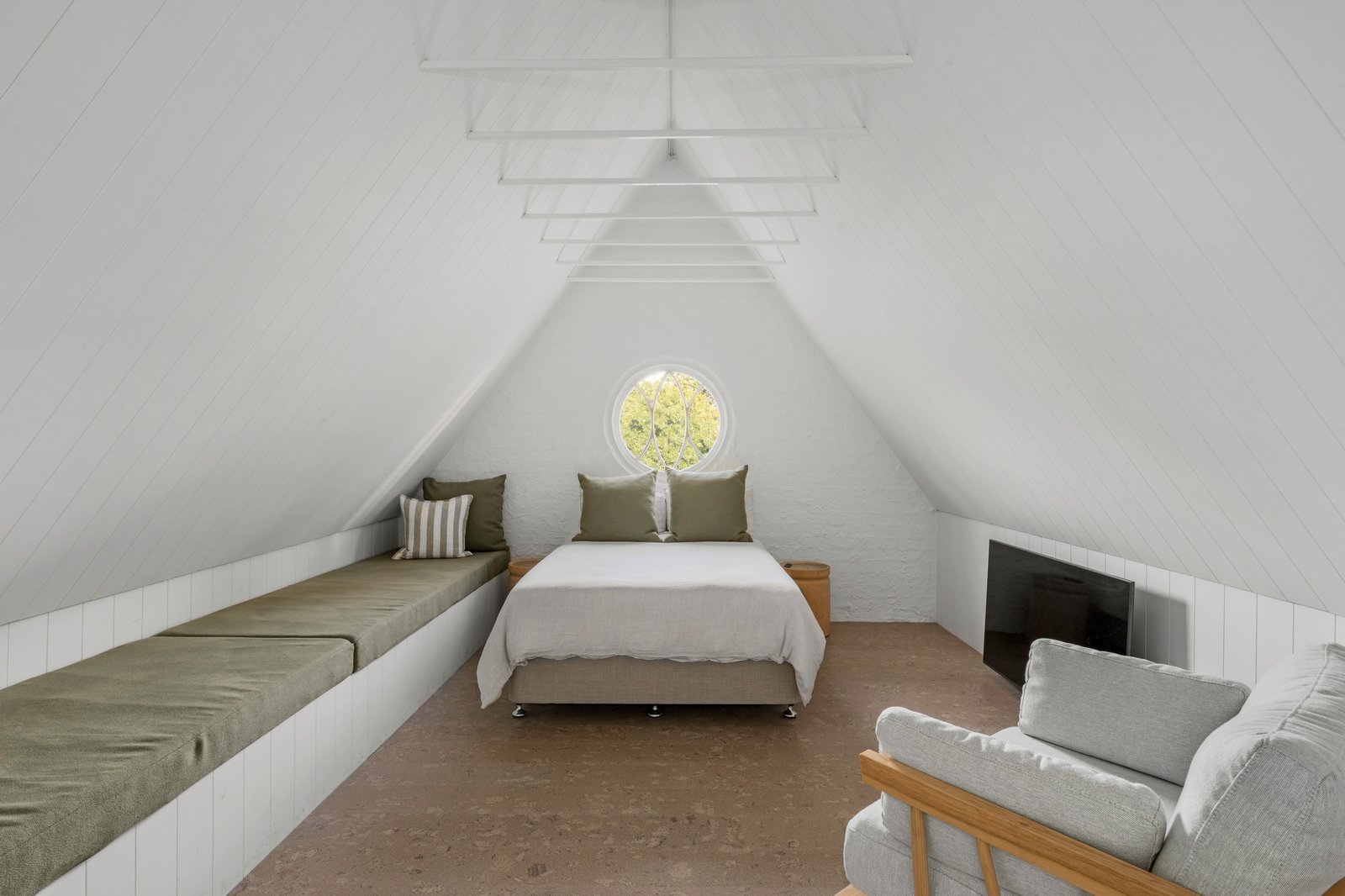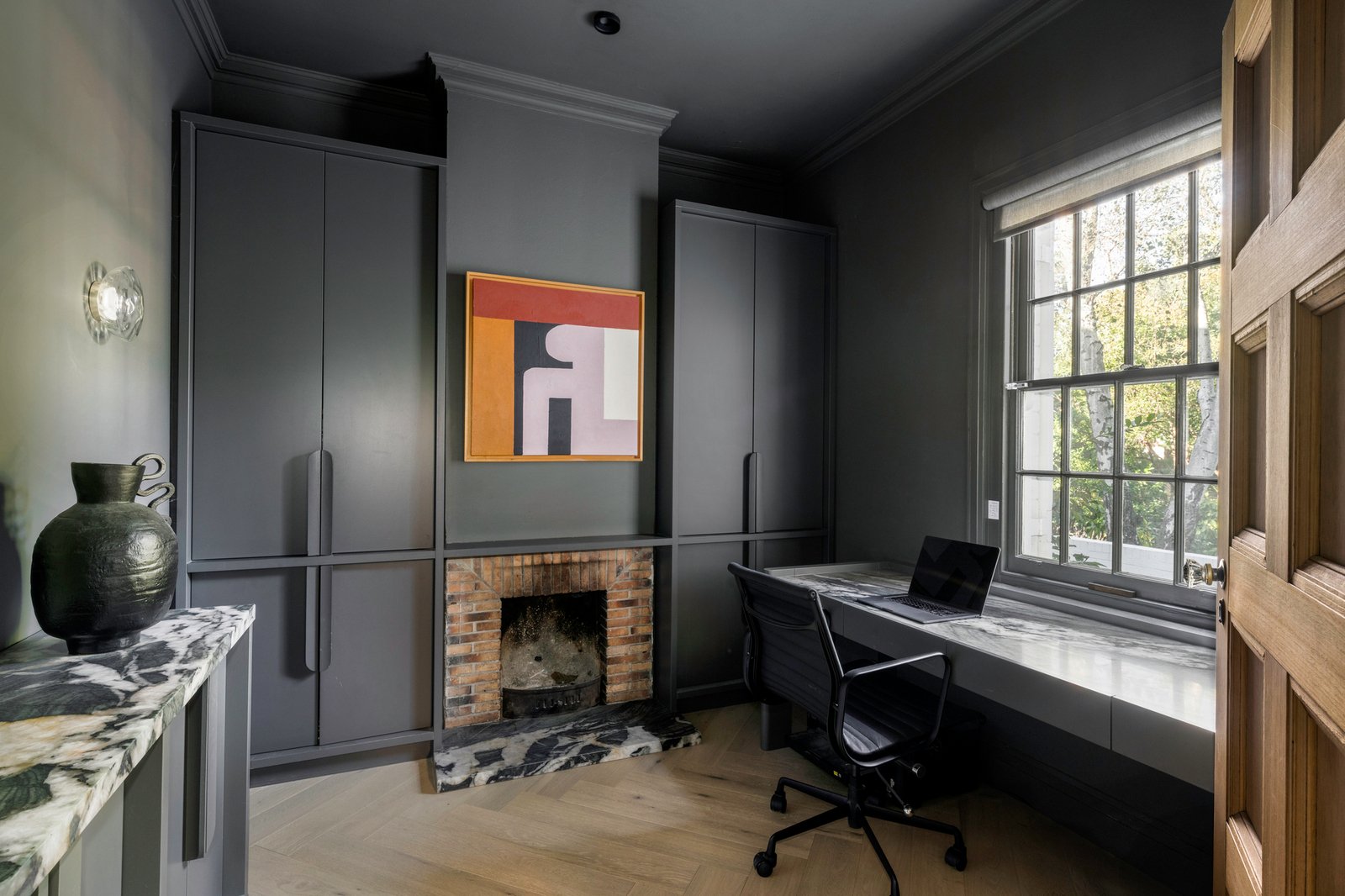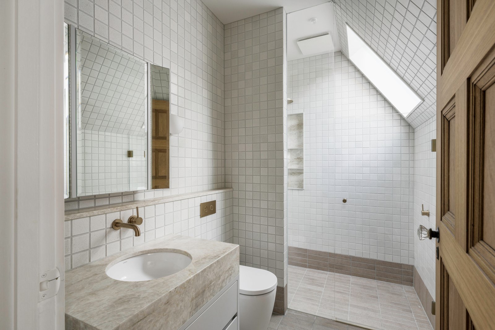 Originally conceived in the 1930s by renowned Melbourne architect Charles N Hollingsworth and now a recently completed innovative renovation and architectural vision by David Neil and the team at Neil Architecture, this Stonington Estate address delivers a compelling composition of heritage and modern contemporary design, set within established gardens by Eckersley Landscape Architecture. Respect for its origins sits alongside a highly considered material direction, where feature lighting by Ross Gardam and Anna Charlesworth, Faucet Strommen tapware and stone and marble selections from Artedomus accentuate the finish. A palette of tobaccos, mustards and deep olive tones carries throughout, giving each space continuity, while herringbone oak floors guide movement through the interiors, with steel-framed glazing and softened architectural curves referencing the past, keeping the dialogue between old and new.