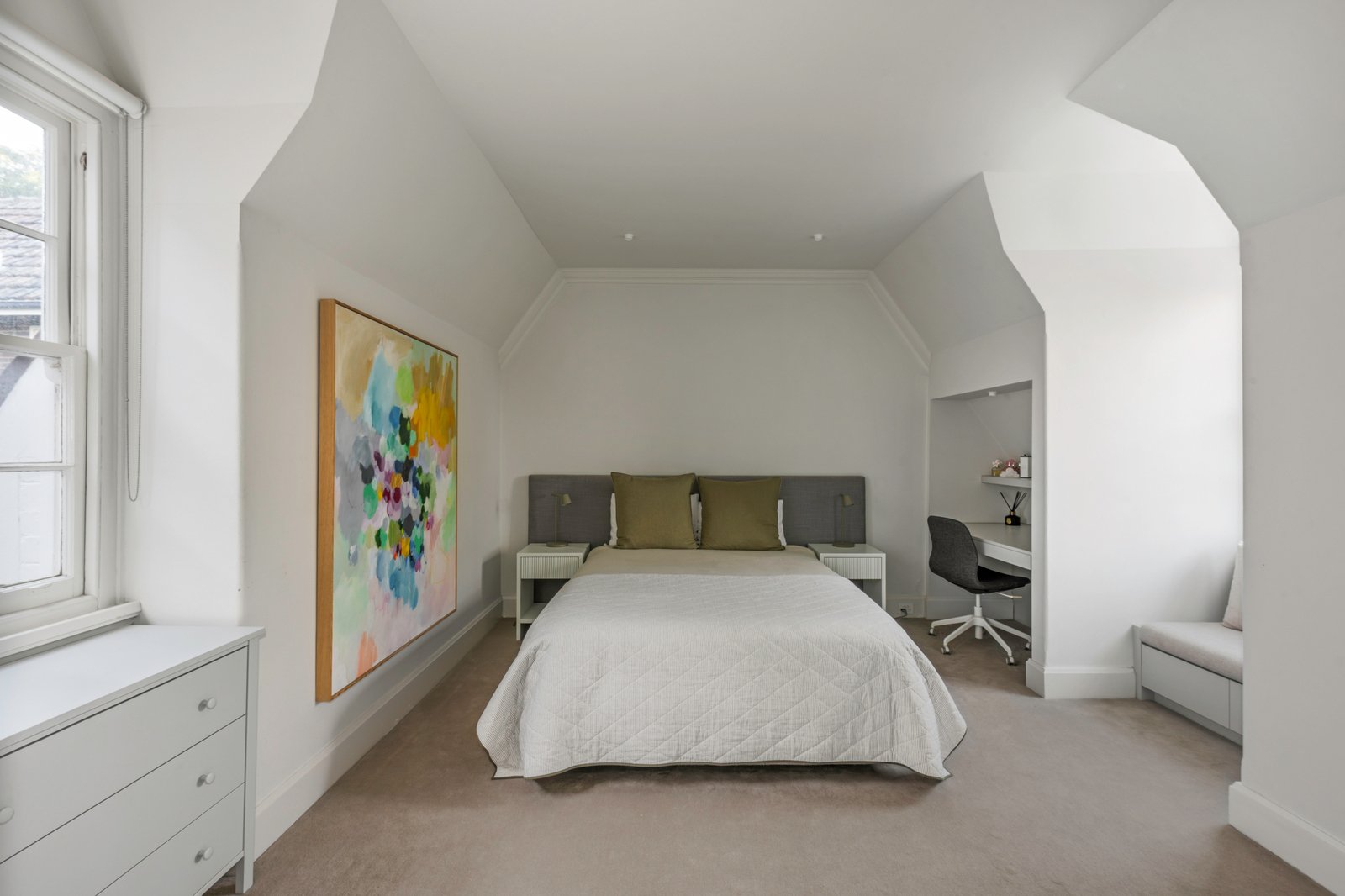 Upstairs features four bedrooms, each with its own en-suite, while the show-stopping master suite introduces extraordinary 4.3m-high ceilings, a gallery of robes, a lavish en-suite with under-tile heating, and views over the rooftop gardens. A further level accessible by lift and stairs reveals a private, self-contained zone ascending further into the original pitched ceilings, offering flexible guest accommodation, with its own bedroom, bathroom, and kitchenette. Inclusions such as hydronic heating, zoned air conditioning, a concealed lift, secure parking, advanced security, a mudroom, a wine cellar, automated irrigation, and secure parking for multiple vehicles complement a premium address, all close to some of Melbourne's finest shopping precincts, prestigious schools, transport links, and the CBD.