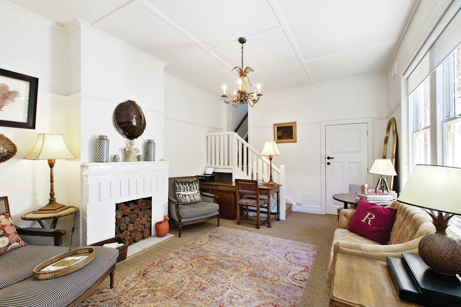 Business and living spaces are connected by a zone comprising of kitchenette, powder room and storage facilities. Impeccably appointed with high ceilings and quality carpets throughout, the residence features an inviting living room with abundant light and a fireplace, as well as a spacious fully equipped kitchen with Glem appliances. A magnificent sun drenched outdoor terrace provides the ideal surrounds for private alfresco dining and entertaining. Upstairs accommodation includes two light-filled bedrooms and a contemporary bathroom. A tranquil generously sized balcony enjoys southern light and completes this serene first-floor haven.