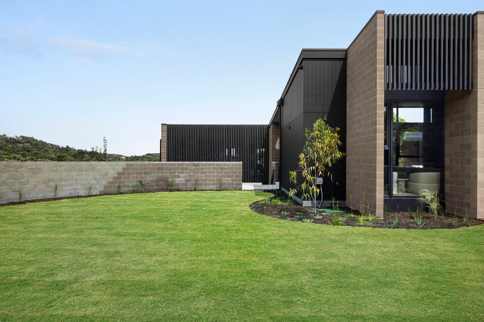 Throughout the home, the architectural language is both bold and timeless. Raw textures and natural finishes are carefully considered and precisely executed, allowing the building to sit in quiet harmony with its coastal surroundings. The design’s nestled position within the landscape provides protection from coastal winds while opening onto curated outdoor spaces and considered zones that elevate everyday living. With the beach quite literally at the doorstep, the home offers direct access to the shoreline, reinforcing its deep connection to nature and the relaxed rhythm of coastal life.